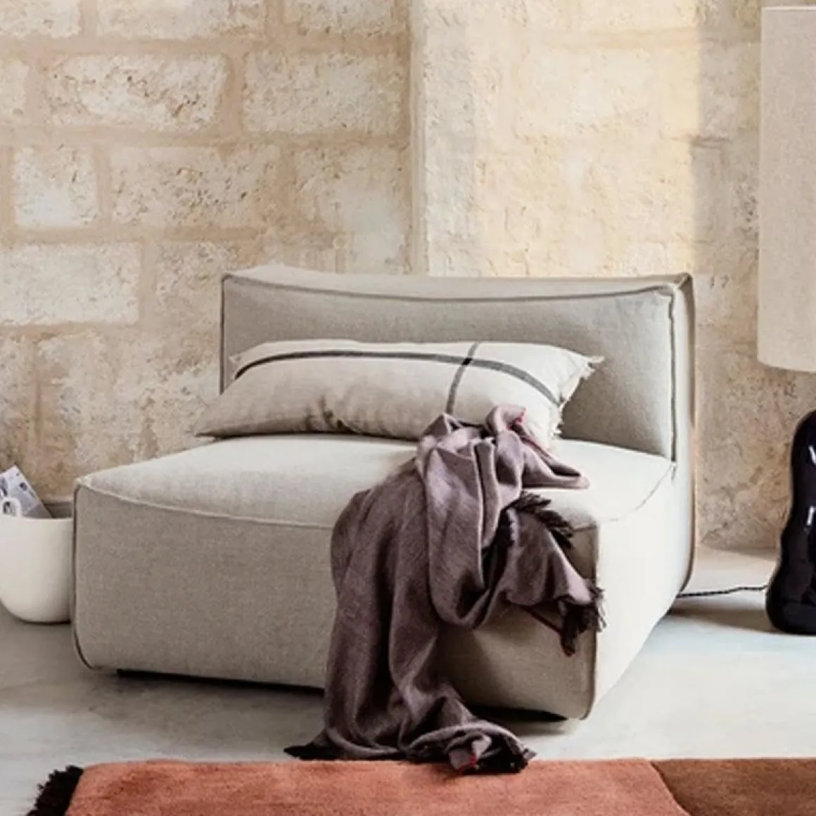 La forme enveloppante et inspirée du pouf de notre canapé bas Catena est généreusement dimensionnée pour une détente et un confort absolus : il est appelé « low living ». Le nom Catena est inspiré de la courbure de la caténaire, un forme en U qu’un chaîne ou un câble adopte lorsqu’elle est soutenue uniquement à ses extrémités, et qui se reflète dans les courbes douces et les coutures surpiquées du canapé Catena. Les conceptions simples à base de modules sont fabriquées avec une mousse micro cellulaire innovante qui assure un confort maximal ainsi qu’une durabilité. La série comprend six modules individuels qui peuvent être combinés de plusieurs manières pour créer l’expression souhaitée.