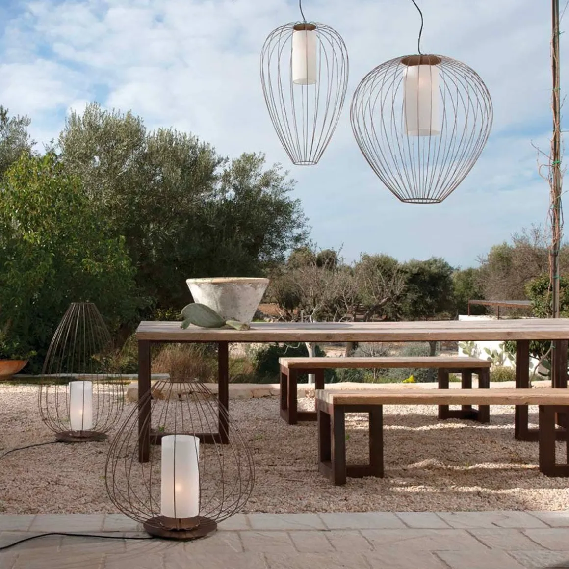 Il y a plus de deux mille ans en Chine, les toutes premières lanternes s’envolaient vers le ciel. Cell imite leur structure et leur esprit, nouant l’air avec un fin fil de métal bronze, une cage de lumière qui renforce son intensité.