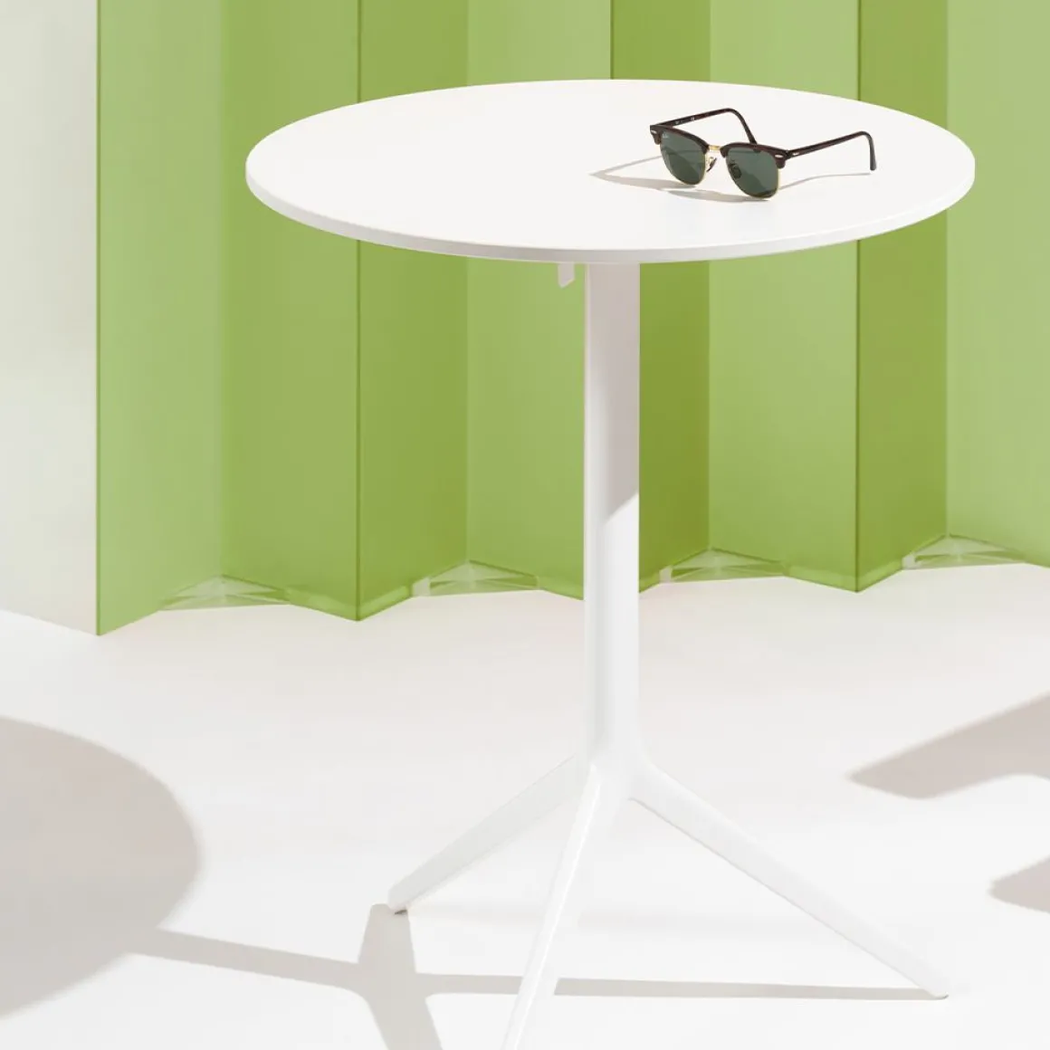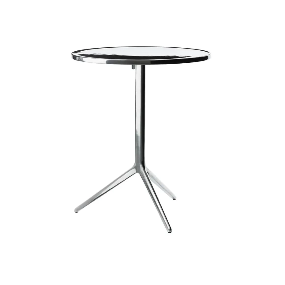 Matériaux: structure en fonte d’aluminium poli ou verni en résine époxy. Plateau en aluminium poli ou en HPL. Versions pour l’extérieur disponibles.