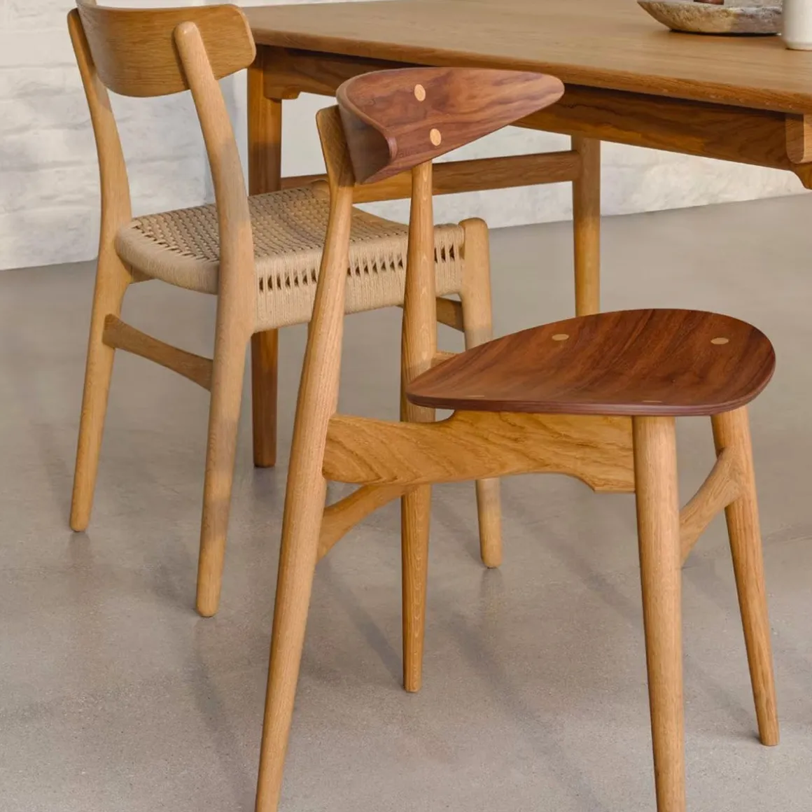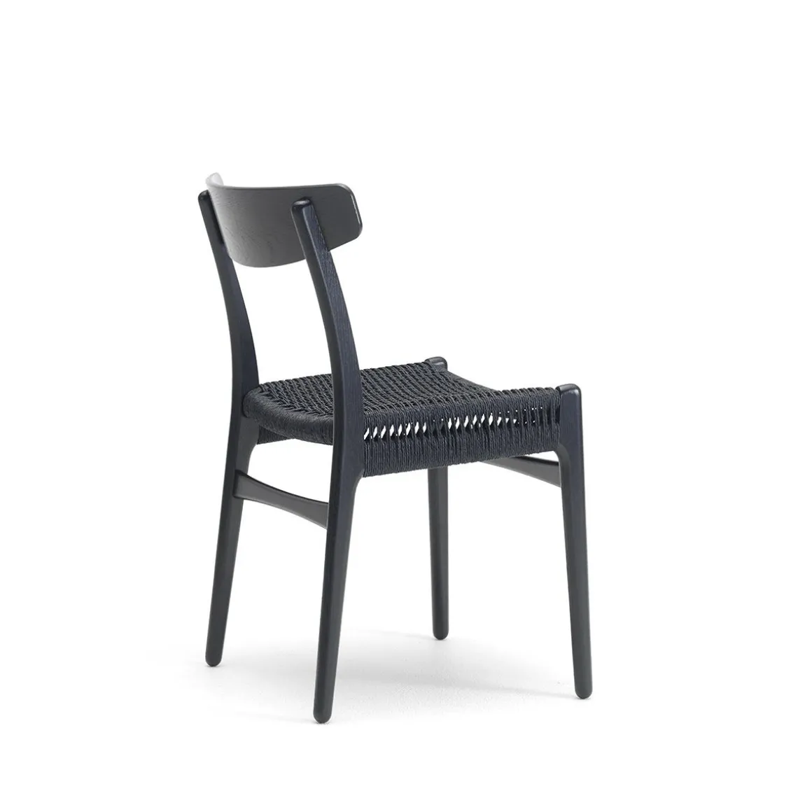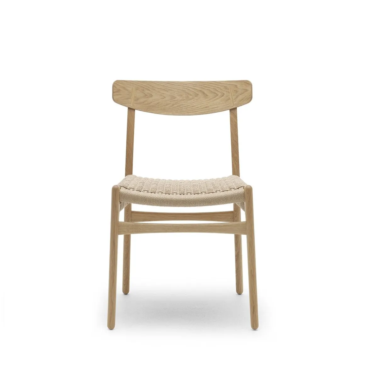 La chaise de salle à manger CH23 a été l’une des premières chaises conçues par Hans J. Wegner pour Carl Hansen & Søn en 1950. Les premiers chefs-d’œuvre qu’il a créés étaient non seulement uniques, mais établissaient également de nouvelles normes pour la conception de meubles modernes avec leur légèreté, leur expression artistique et leur ergonomie. Bien que la chaise CH23 puisse sembler simple à première vue, elle intègre de nombreux détails fins et sophistiqués, parmi lesquels les élégants capuchons cruciformes du dossier, un siège tissé à la main unique et des pieds arrière arqués vers l’arrière qui assurent une stabilité optimale. Carl Hansen & Søn a relancé le CH23 en 2017, fidèle au dessin de travail original de Wegner, faisant à nouveau partie du premier chef-d’œuvre de la collection.