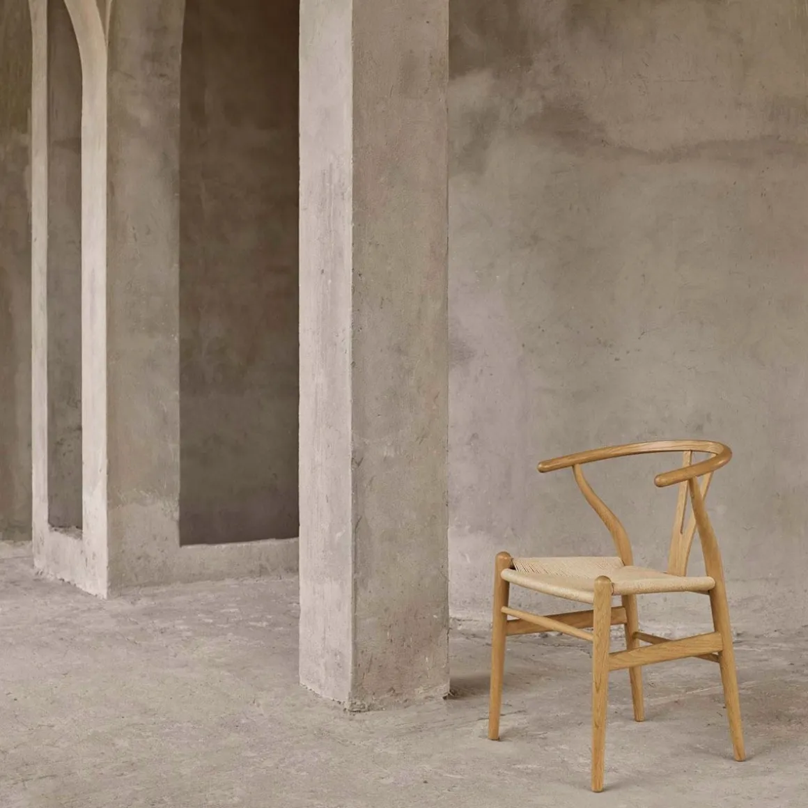 Cette chaise est surnommée « Wishbone » ou « chaise Y » en référence à son dossier en forme de brèche de poulet. Sa Y forme offre toute la variété de positions assises très confortables.