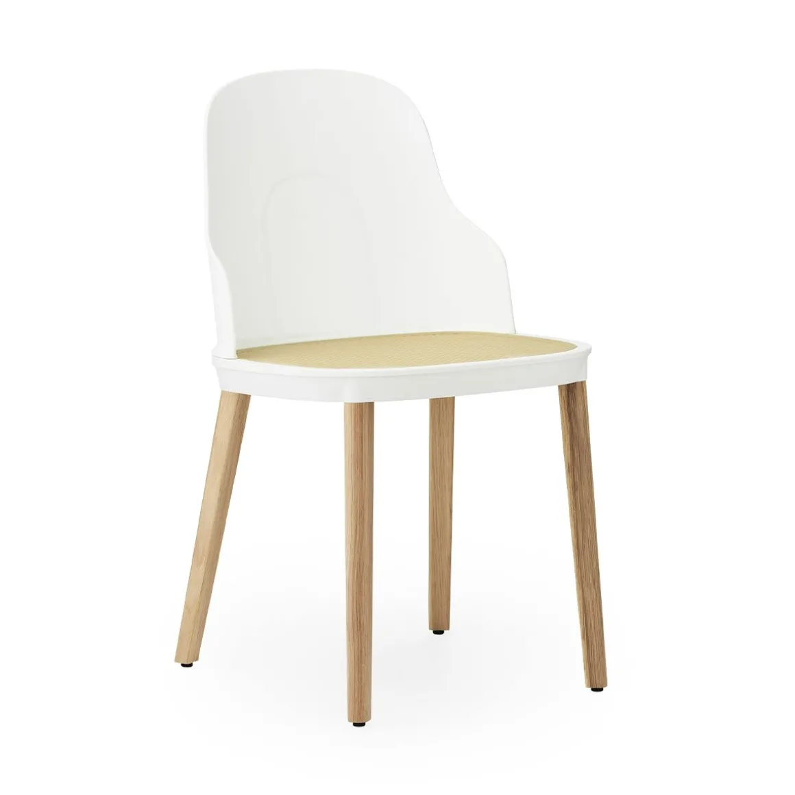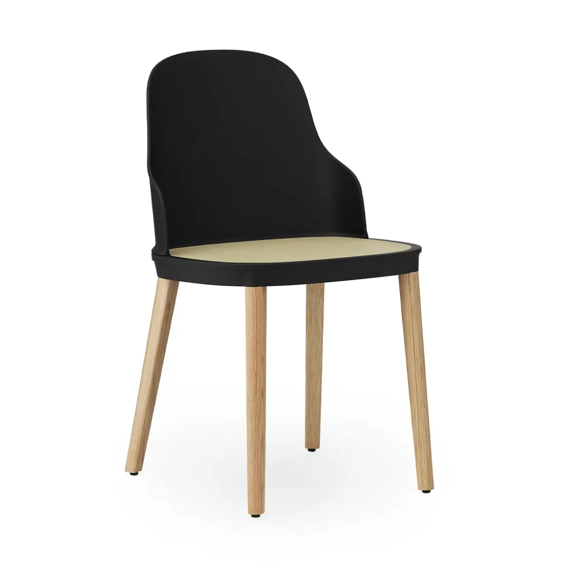 Matériaux : structure en polypropylène, assise en polyamide ou polypropylène moulé en osier, pieds en chêne laqué