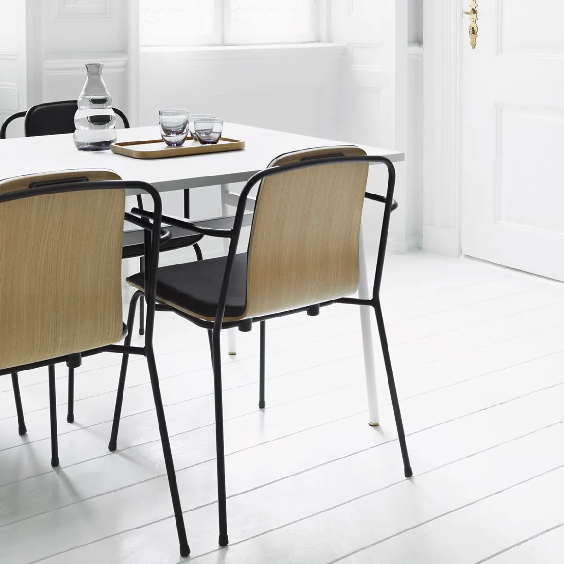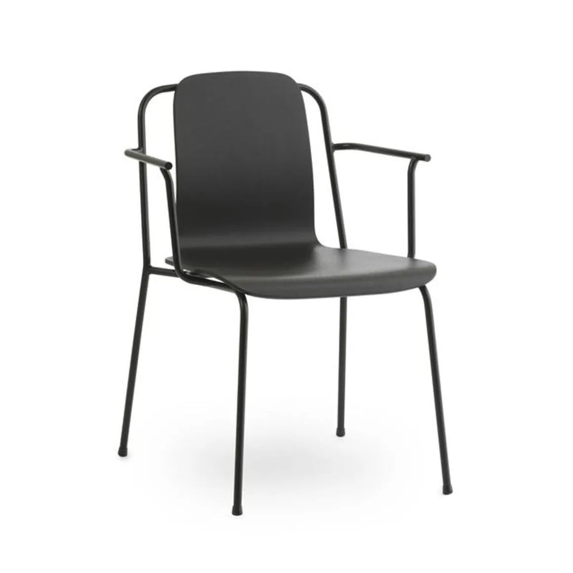 Il y a quelque chose de pratiquement graphique dans la façon dont le cadre en acier mince se développe sous le siège et le dossier de la chaise Studio, encadrant la coque moulée dans un design aéré. Les lignes fluides se détachent dans une silhouette accrocheuse, comme un dessin au trait ou un pictogramme, tout comme les espaces vides entre le cadre et le dos agissent pour définir la forme. La construction simple en placage et tube d’acier oriente les pensées vers les anciennes chaises d’usine françaises, donnant à Studio ses notes industrielles. Un design qui attire l’attention, mais rayonne de pure simplicité. La série polyvalente de chaises Studio est conçue pour une utilisation dans les espaces domestiques et publics. La série comprend des chaises, des fauteuils et des tabourets de bar en deux hauteurs. Tous les modèles sont empilables, ce qui rend la gamme adaptée aux restaurants et aux établissements d’enseignement nécessitant des zones transformables. Le cadre en acier permet de saisir facilement les chaises et de les déplacer selon les besoins.