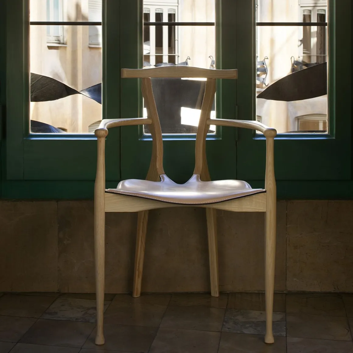 La chaise Gaulino est l’une des meilleures créations d’Oscar Tusquets et est devenue une icône du design espagnol. Fabriqué exclusivement à partir de bois et de cuir, le nom vient des influences qui ont inspiré le designer : Antoni Gaudí et Carlo Mollino. Réédition, améliorée, de la chaise historique Gaulino qui, conçue en 1987, a été sélectionnée au Prix de Design Industriel Adi-Fad de 1989 et à Iberdiseño en 1990. Depuis lors, elle a toujours fait partie des expositions rétrospectives de Design espagnol et figures dans les publications, ce qui en a fait une référence dans le design du XXe siècle en Espagne.