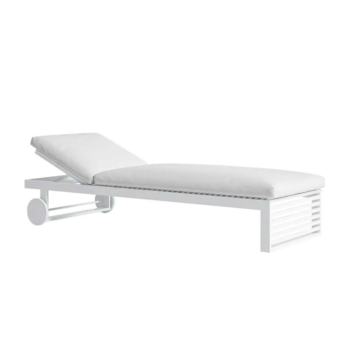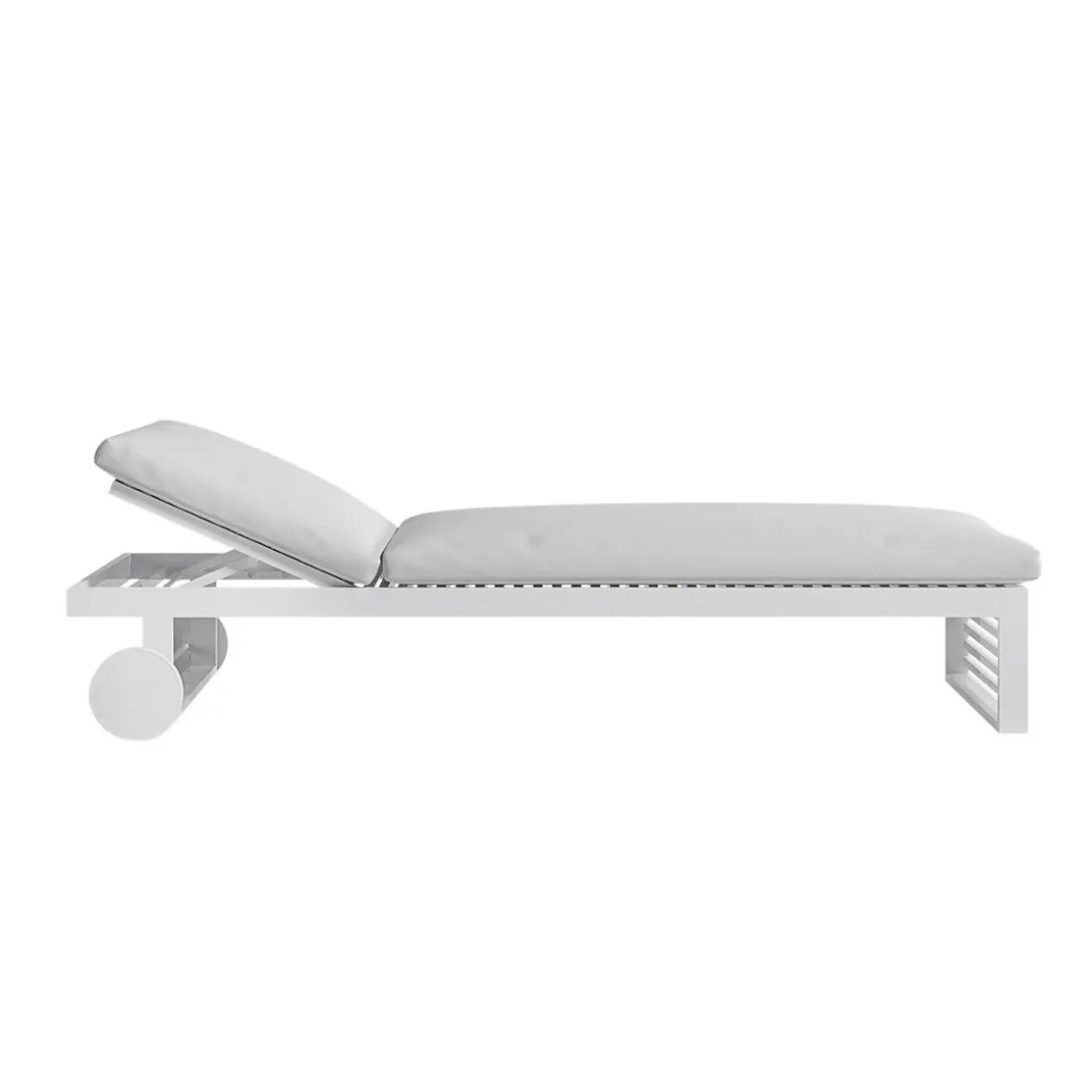 Matériaux : aluminium thermolaqué, polyuréthane recouverte de tissu hydrofuge, tapisseie déhoussable