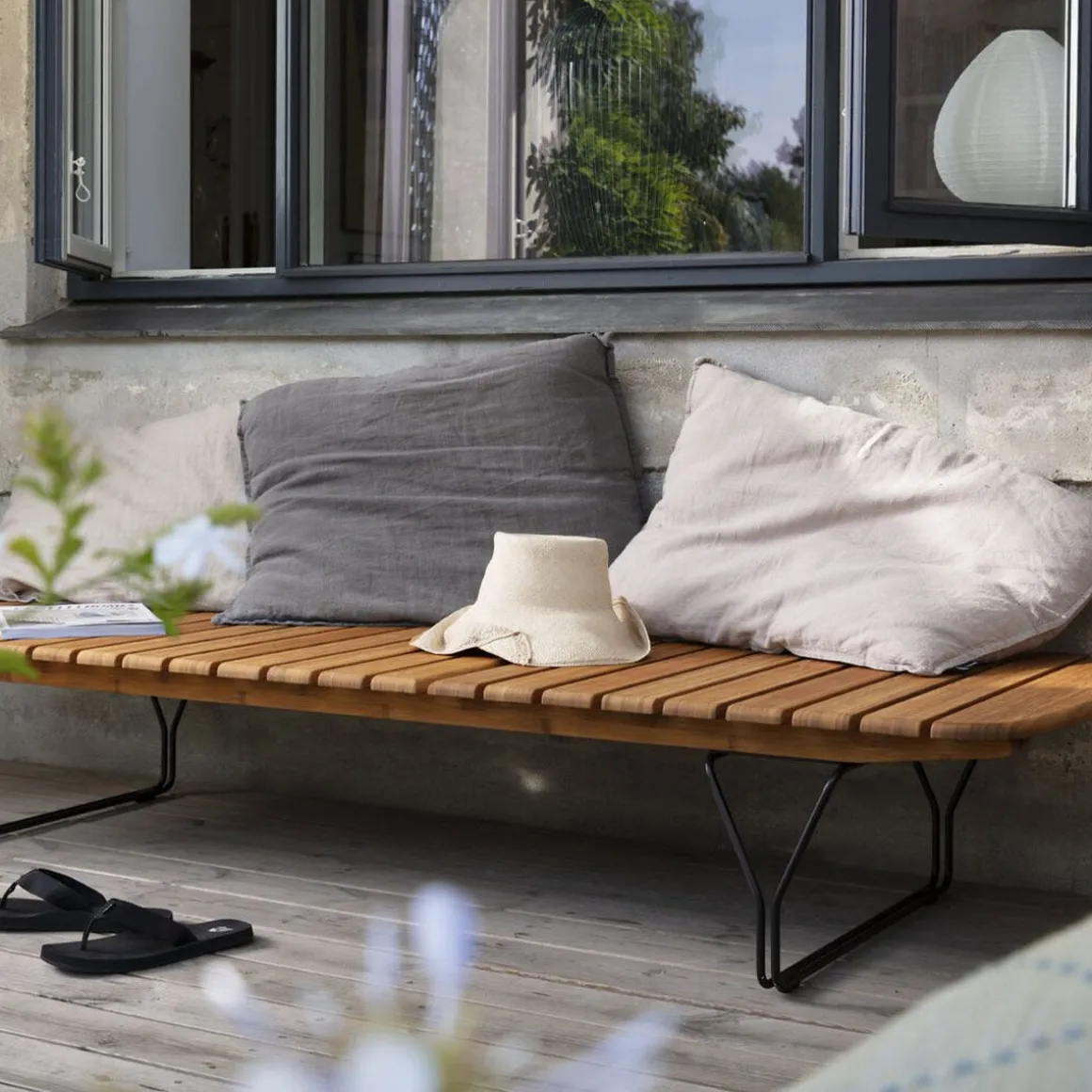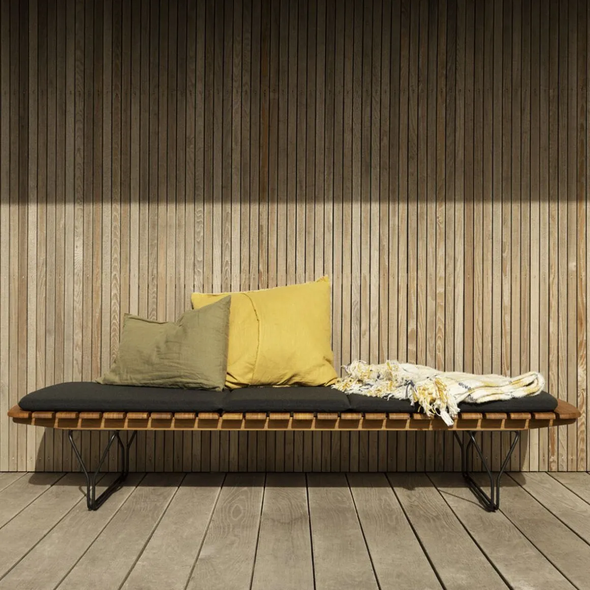 MOLO Sunbed est fabriqué en lamelles de bambou avec une construction de jambe décorative en métal noir enduit de poudre. La surface et les lamelles de bambou arrondies et douces combinées à la construction métallique conduisent les pensées vers une jetée et l’atmosphère détendue au bord de la mer. Le dossier du lit de bronzage MOLO est réglable et dispose de cinq positions différentes, ce qui permet de se coucher ou de s’asseoir. MOLO Sunbed est esthétiquement beau avec sa surface chaude en bambou, mais pour encore plus de confort, vous pouvez ajouter le coussin MOLO Sunbed en tissu Sunbrella Natte gris foncé. Le tissu Natte de Sunbrella est résistant à l’eau et aux taches et est constitué de polyester à 100%.