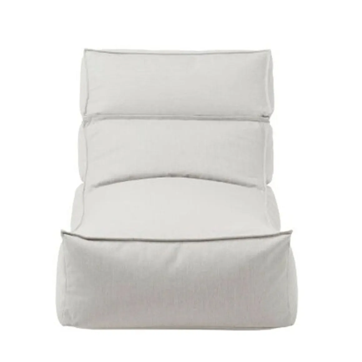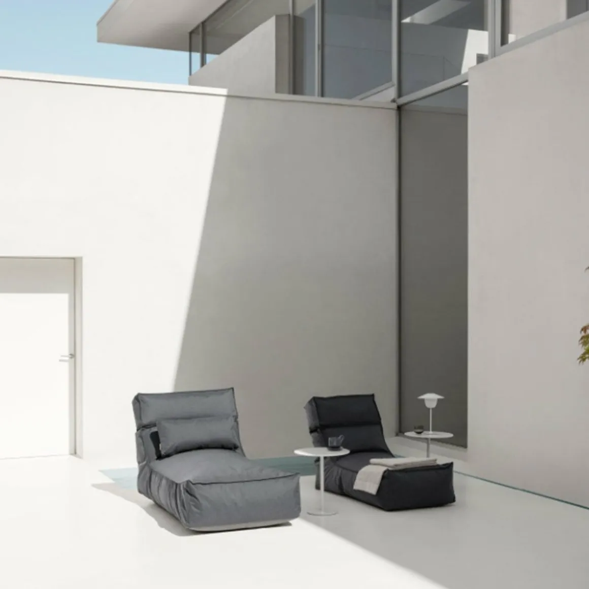 Stay with me ! Le fauteuil lounge L vous invite à vous détendre dehors et à profiter de la saison chaude. Cette chaise longue extérieure, en matériau étanche, promet des moments de détente merveilleux. Le textile de qualité est par ailleurs facile à entretenir et résiste aux UV et intempéries. Le rembourrage de coussin, en perles EPS respectueuses de l’environnement, préserve la forme et le volume de la chaise longue. Si confortable que l’on ne veut plus se lever. Les matériaux étant légers, les chaises longues peuvent facilement être transportées sur la terrasse ou dans la jardin.