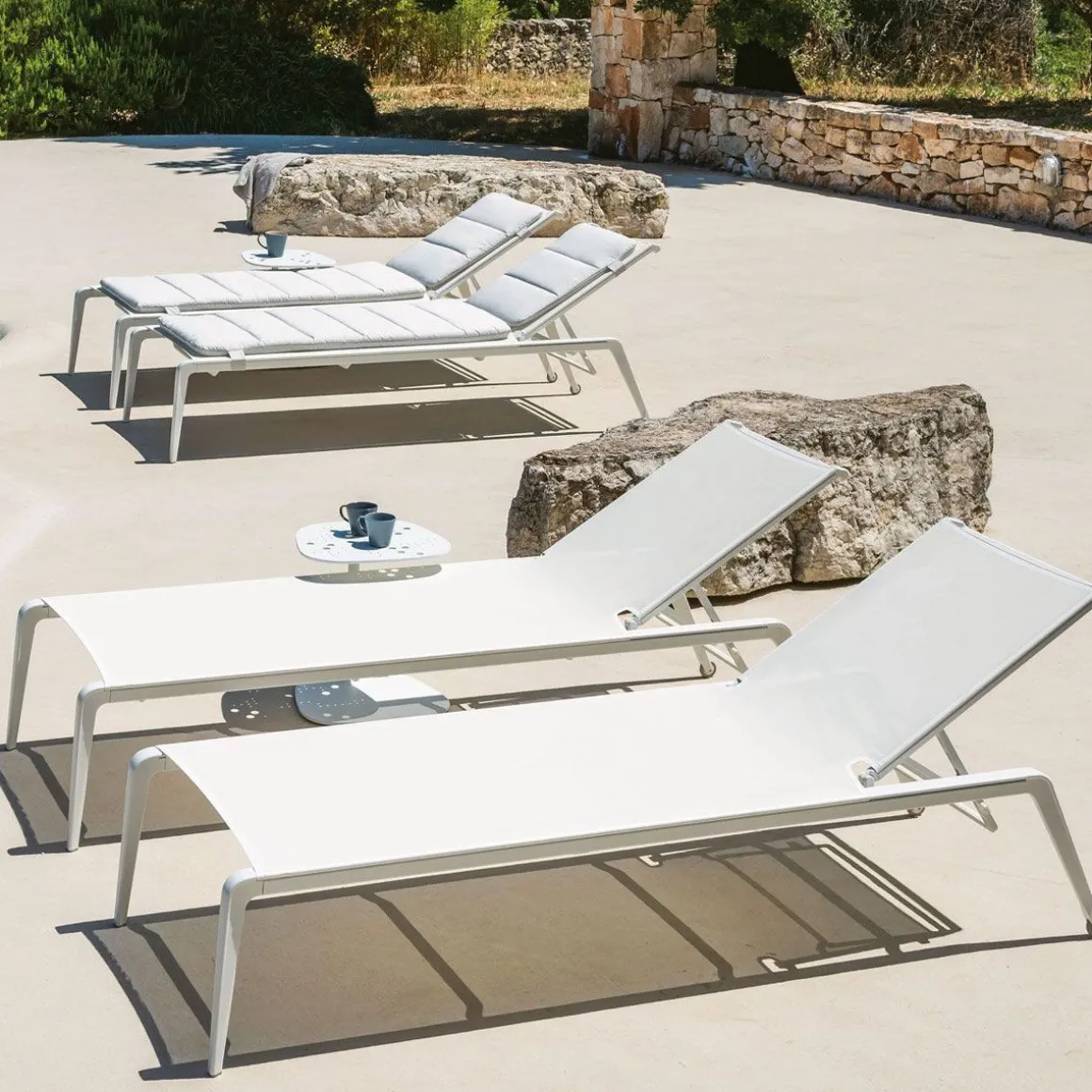 Indispensable au bord de la piscine ou sur la pelouse fraîchement tondue, la chaise longue moderne Ushuaia incarne le concept parfait de ce qui est généralement défini comme «détente estivale». Ushuaia est équipé de roulettes, de sorte qu’il peut être déplacé ou positionné facilement. Empilable, avec dossier inclinable à 7 positions.