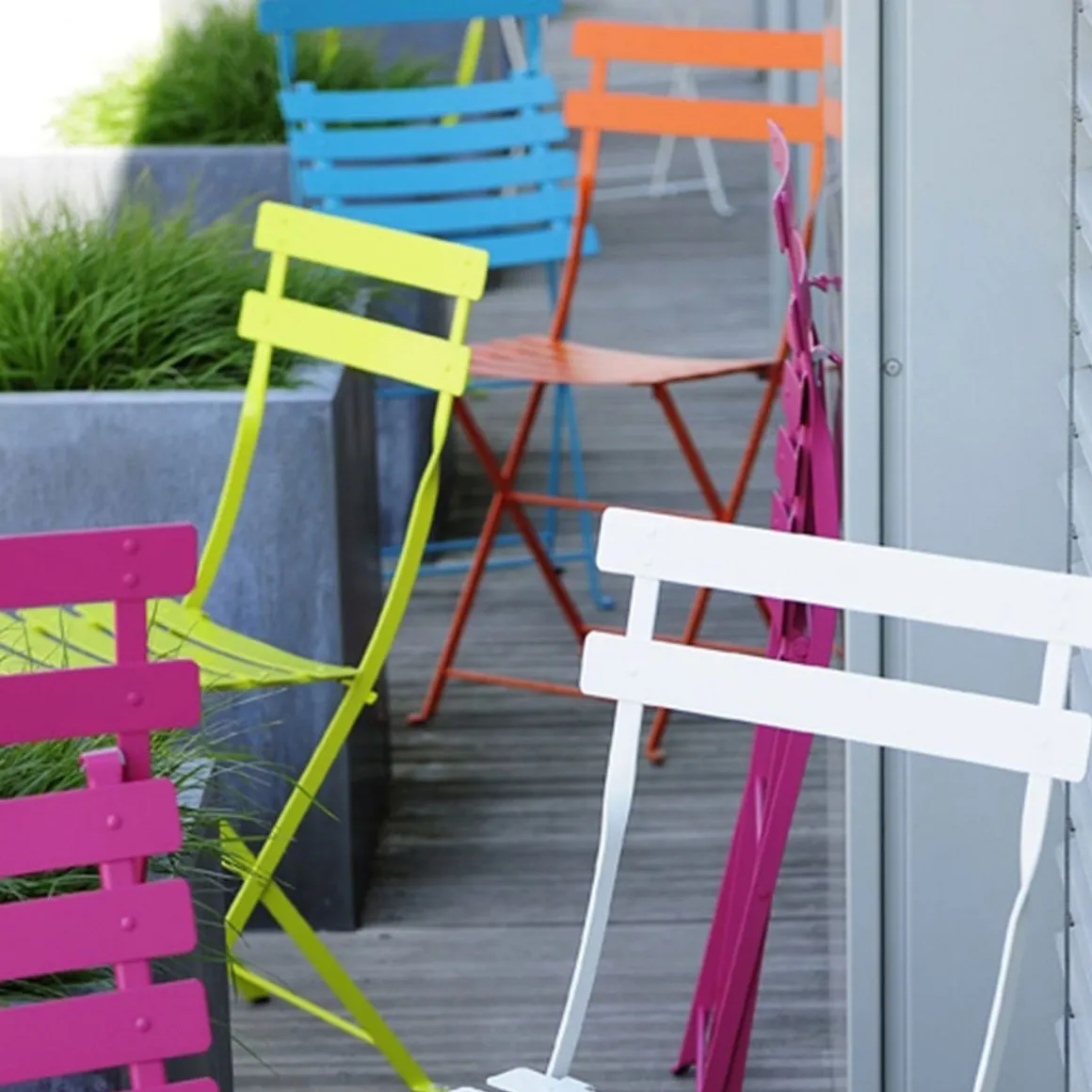 Chaise métal Bistro de Fermob. La collection Bistro crée en 1889 ne cesse de séduir avec son mobilier intemporel. Le mobilier pliant, robuste, léger et facile à transporter trouve sa place sur les terasses de café, dans un coin de lecture ou encore dans votre jardin. Cette collection pleine de simplicité vous est proposée dans de nombreux coloris acidulés apportant la gaité ou que vous soyez. Adaptée pour l’intérieur et l’extérieur, elle deviendra rapidemment indispensable à votre quotidien. Son design minimaliste plaît aux tout petits autant qu’aux grands. Cette chaise pliante est proposée dans une multitude de couleurs qui offrent autant de possibilités de créer son propre décor. Compacte, elle est idéale dans les espaces exigus.