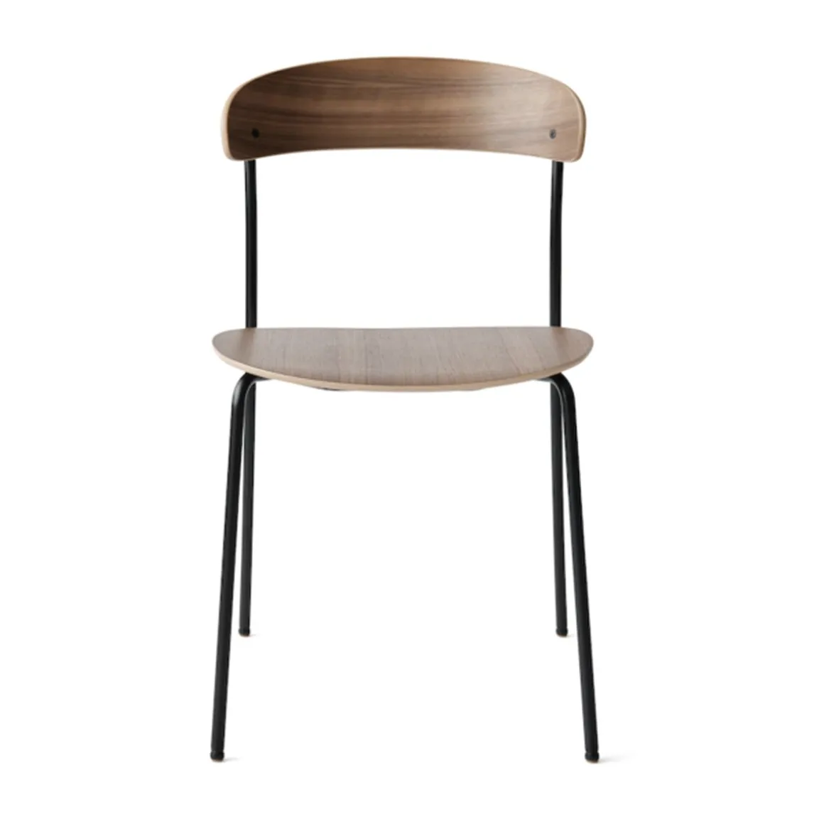 La chaise Missing apparaît comme si un simple dessin au trait avait pris vie. Sensuelle mais forte, la courbe douce de chaque ligne crée une fantaisie difficile à décrire. Les lignes droites ont été adoucies, permettant à l’assise et au dossier en bois d’apparaître comme s’ils flottaient au-dessus du mince cadre en acier. Ce qui reste, ce sont les éléments essentiels de notre propre interprétation de l’humble chaise de café : légère, empilable et durable, complétée par une silhouette très confortable.