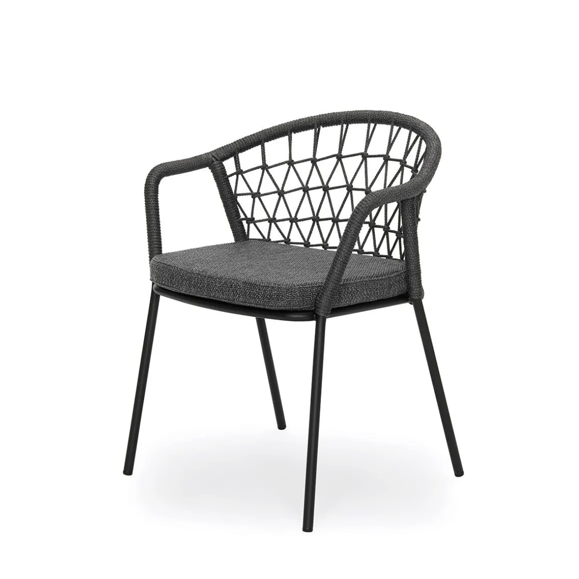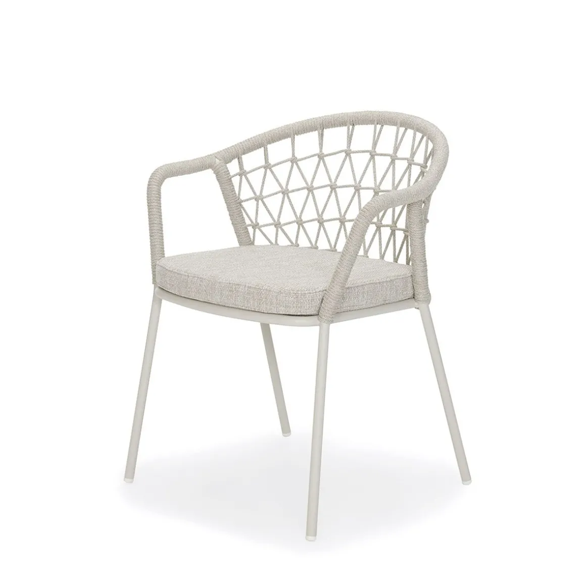 Panarea est né d’une idée du paysage côtier méditerranéen, qui évoque les couleurs et la brise rafraîchissante d’un dîner en plein air sur une terrasse surplombant la mer. Un fauteuil caractérisé par un tissage à la main en corde en polypropylène 100% Made in Italy qui enveloppe le cadre en tube d’acier Ø 20 mm. Sur l’assise repose un coussin rembourré en mousse de polyuréthane drainante recouverte d’un tissu réalisé avec le même fil que le tissage.