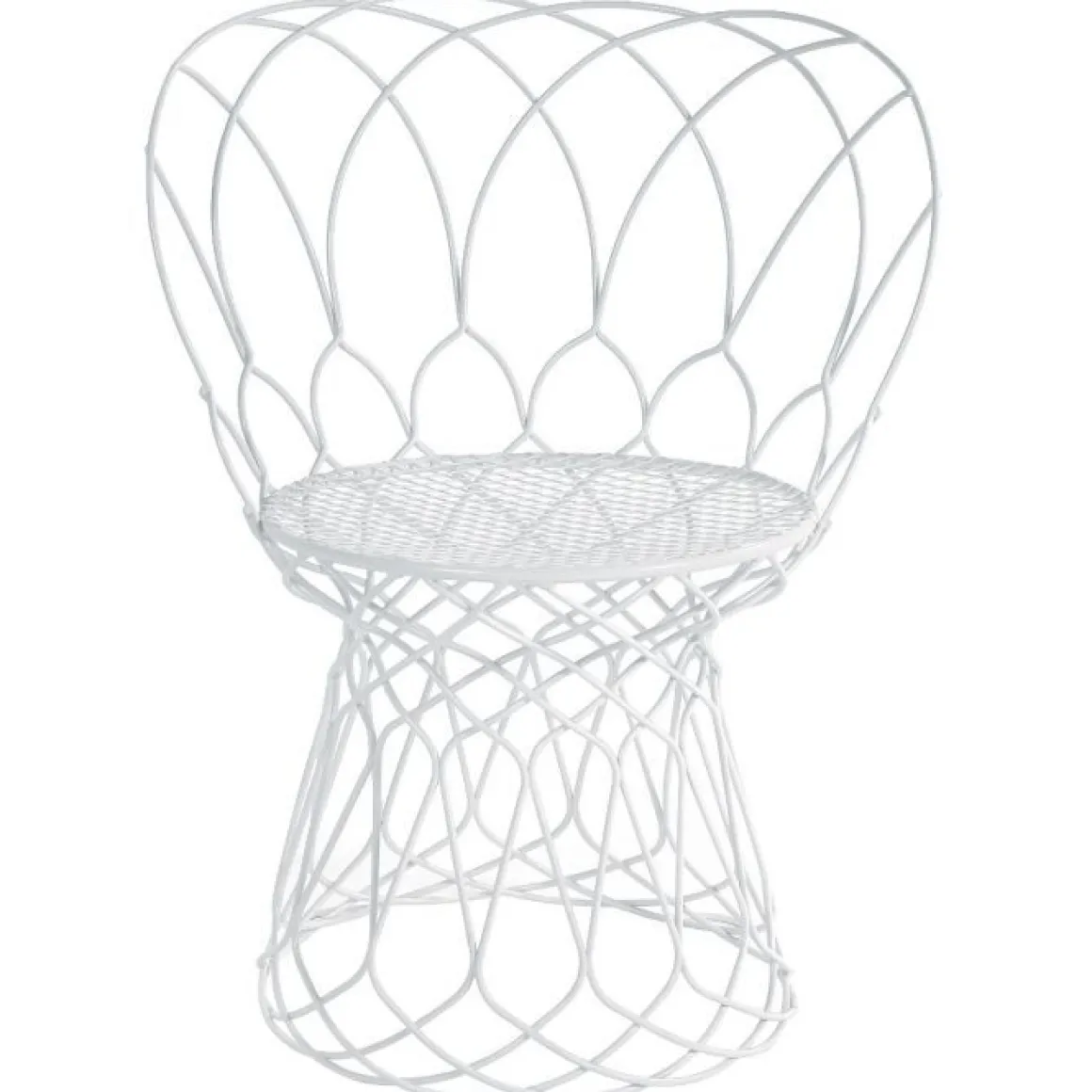 Une collection de meubles en métal qui évoque un design classique et le réinterprète avec beaucoup d’ironie. Grâce à l’avancée technologique d’EMU dans le travail du métal, les boucles de fer, qui paraient autrefois les fauteuils réalisés artisanalement, sont aujourd’hui produites à l’aide d’un processus industriel qui restitue un mobilier caractérisé par des motifs complexes aux losanges répétés.La géométrie du design attribue une tridimensionnalité aux objets. Leur silhouette incurvée confère au mobilier un aspect doux et sensuel et une élégance d’autrefois.La chaise, le fauteuil, le pouf sont réalisés en fil d’acier pré-zingué à chaud, les sièges en tubes d’acier et en tôle déployée.