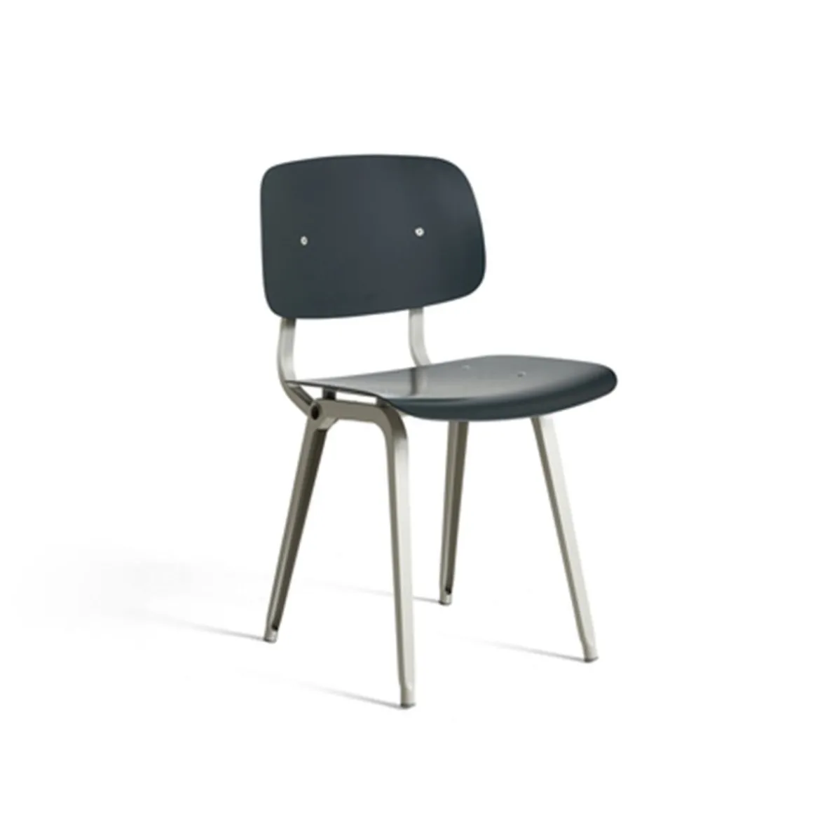 Chaise Revolt de Hay. Créée à l’origine par Friso Kramer alors qu’il travaillait chez Ahrend dans les années 1950, la chaise Revolt a été relancée par HAY avec Ahrend. L’une des créations les plus célèbres de Friso Kramer, la chaise Revolt incarne son style minimaliste distinctif; une conception révolutionnaire et un choix de matériaux qui utilise un cadre en tôle d’acier plié au lieu d’un cadre tubulaire traditionnel. Reproduite aujourd’hui selon le même processus, la chaise conserve la fonctionnalité et la construction résiliente de son précurseur du milieu du siècle, mais dans un choix de matériau durable comprenant un mélange de matériaux recyclés post-consommation et ABS vierge dans différentes options de couleurs. Chaise dynamique et flexible, la conception ergonomique de Revolt évolue avec son utilisateur, offrant un soutien actif tout en travaillant, en mangeant ou en étant assis dans des conférences. Son confort, sa durabilité et son esthétique intemporelle le rendent approprié pour une utilisation dans une grande variété d’espaces privés, professionnels ou publics.