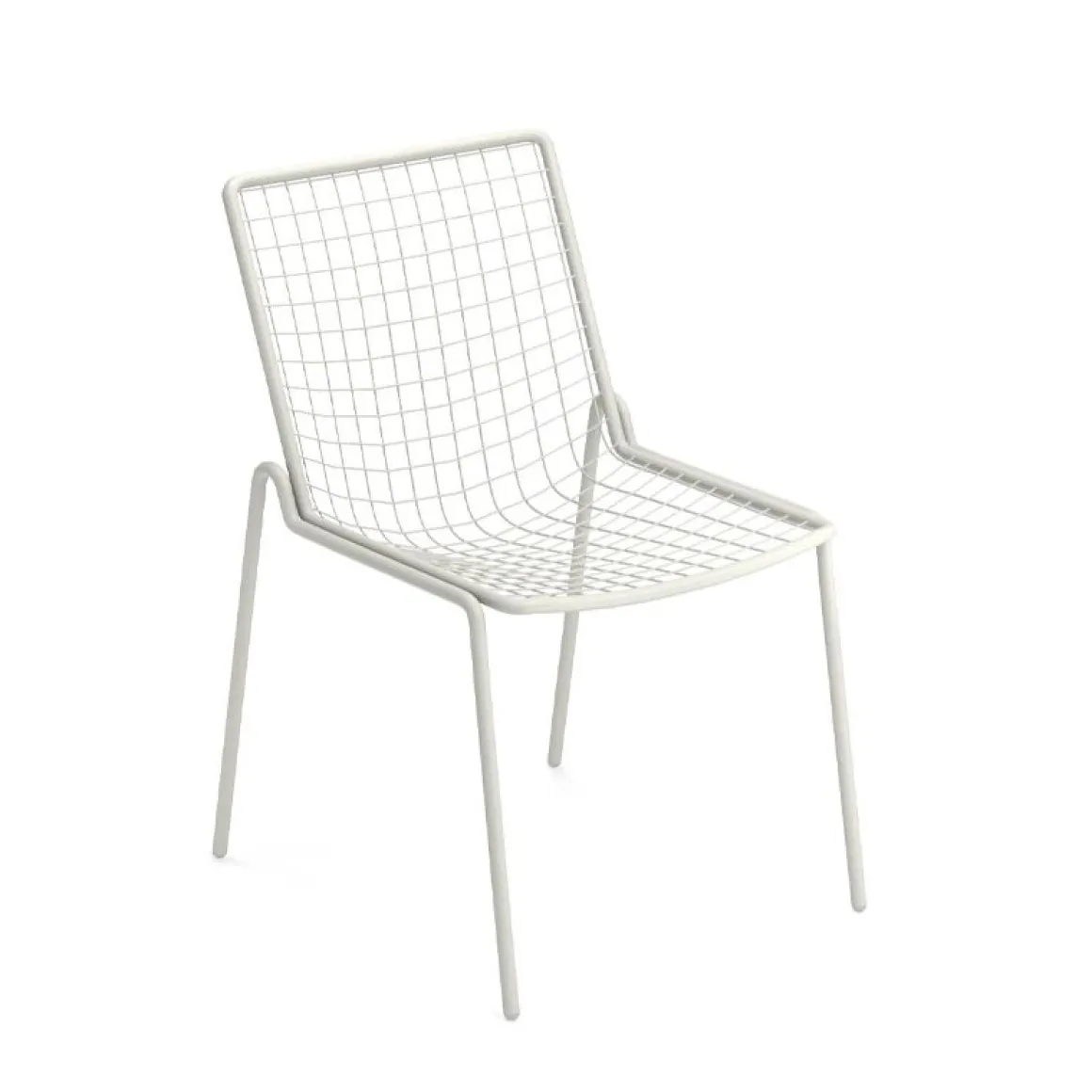 RIO R50 présente une structure en tube d’acier ASFORM, acier de haute qualité doté de capacités mécaniques élevées et d’une haute résistance au poids. Le tube d’acier se caractérise par un « R » bien visible dans la zone de jonction entre l’assise et le dossier. Toutes les soudures de nature structurelle sont effectuées suivant la technologie Ming, qui assure une meilleure résistance aux sollicitations et réduit le risque de rouille, tandis que, pour une plus grande précision, le grillage en ronds d’acier est électrosoudé à la structure. Comme pour tous les produits EMU en acier, il est prévu un pré-traitement de cataphorèse, puis l’application d’une peinture poudre thermodurcissable ; le produit est ainsi recouvert d’une couche de peinture d’une épaisseur homogène, présentant un degré élevé d’adhérence et de résistance. La présence d’embouts en nylon à l’extrémité des pieds permet de protéger et de mieux déplacer le produit.