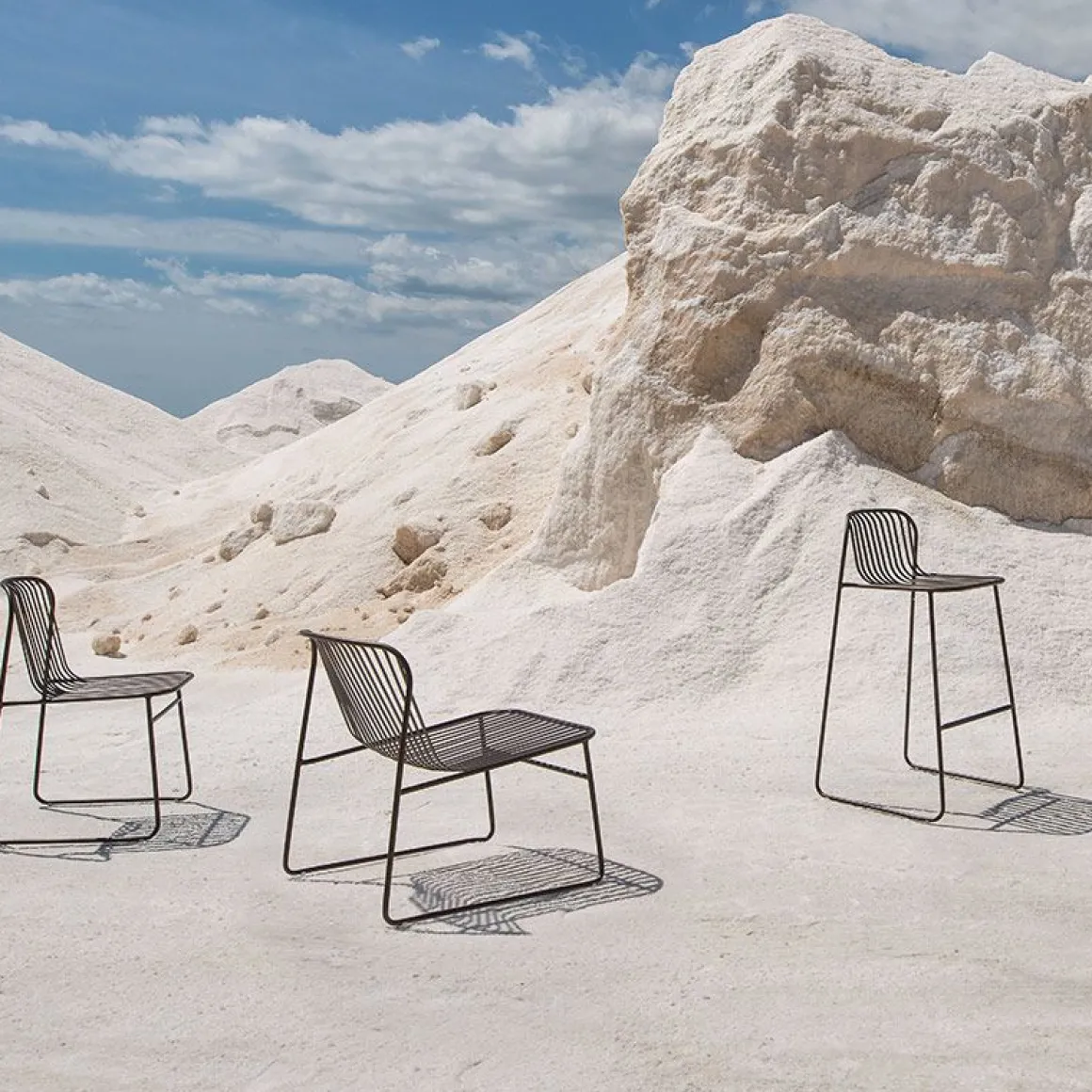 La collection de sièges en acier Riviera, dessinée par Lucidi/Pevere, comprend différents éléments: chaise, fauteuil, transat et tabouret; sa caractéristique principale: un signe graphique minimal et raffiné. La structure, entièrement soudée, est réalisée en tubulaire et barres à profil arrondi (en demi-amande) d’acier Fe360. Revêtement en Emu-Coat (cataphorèse + laquage).