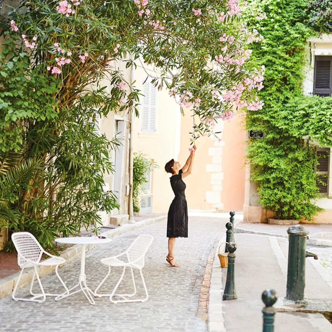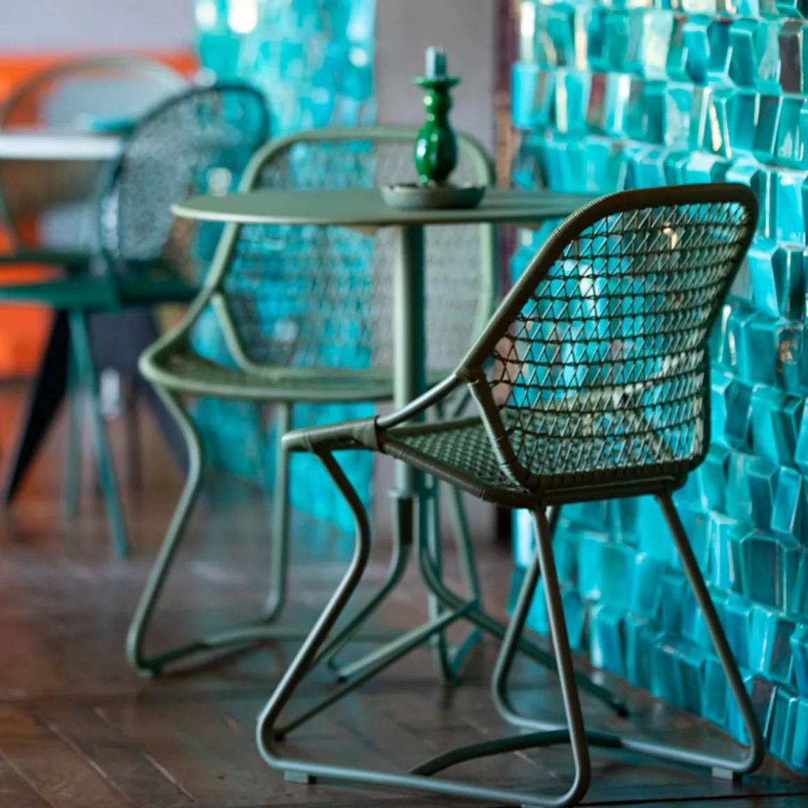 Chaise Sixties de Fermob par Frédéric Sofia. Dotée d’une structure robuste en aluminium et d’une assise formée d’un tressage en fibres synthétique polyéthylène outdoor très résistant, cette chaise de jardin évolue parfaitement en extérieur. Mais, nomade par excellence, étant donné son poids si léger, et ultra-compacte, elle rentrera aussi avec plaisir dans votre intérieur. Son tressage aéré et douillet invite à passer de bons moments attablés… Fait de polymère, il est ultra confortable, avec ses motifs exclusifs légers et stylés, et sa forme emboîtante. Le design tout en rondeurs de votre chaise Sixties explique aussi votre envie de prolonger tous vos repas ! Envie d’une chaise qui vous fait du bien avec son style qui vous transporte tout droit dans les sixties ? Craquez pour la chaise Sixties, dans des coloris élégants et raffinés.