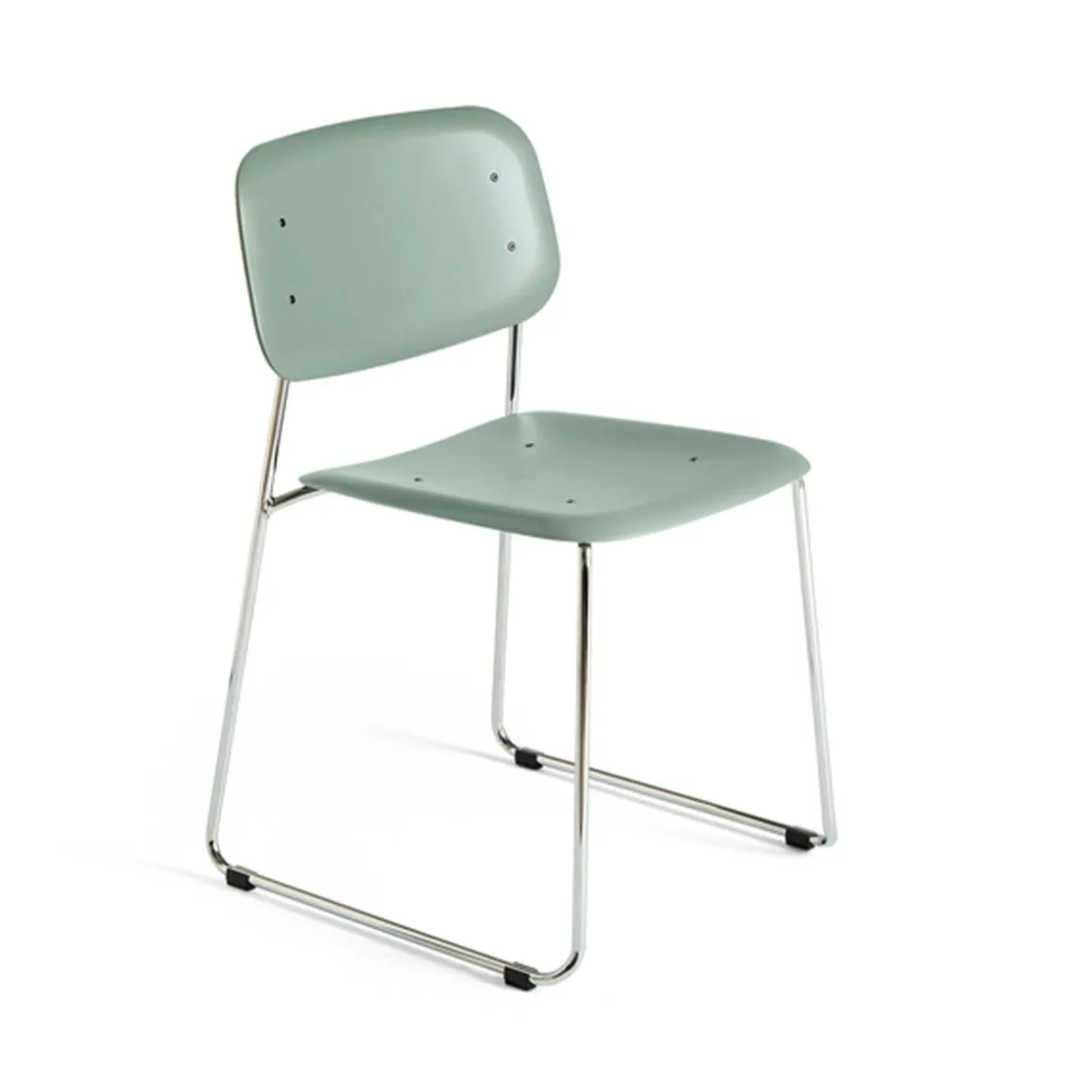 Chaise soft edge P10 sled de Hay. Avec son siège et son dossier en plastique (PP) dans une large gamme de couleurs et sa base en acier, le traîneau Soft Edge P10 offre à la fois une esthétique épurée, une stabilité et une fonctionnalité. Sa résistance, son empilabilité et sa capacité à relier plusieurs chaises ensemble le rendent idéal pour une utilisation dans des environnements privés, publics et contractuels – des maisons aux espaces d’entreprise et aux cafés.