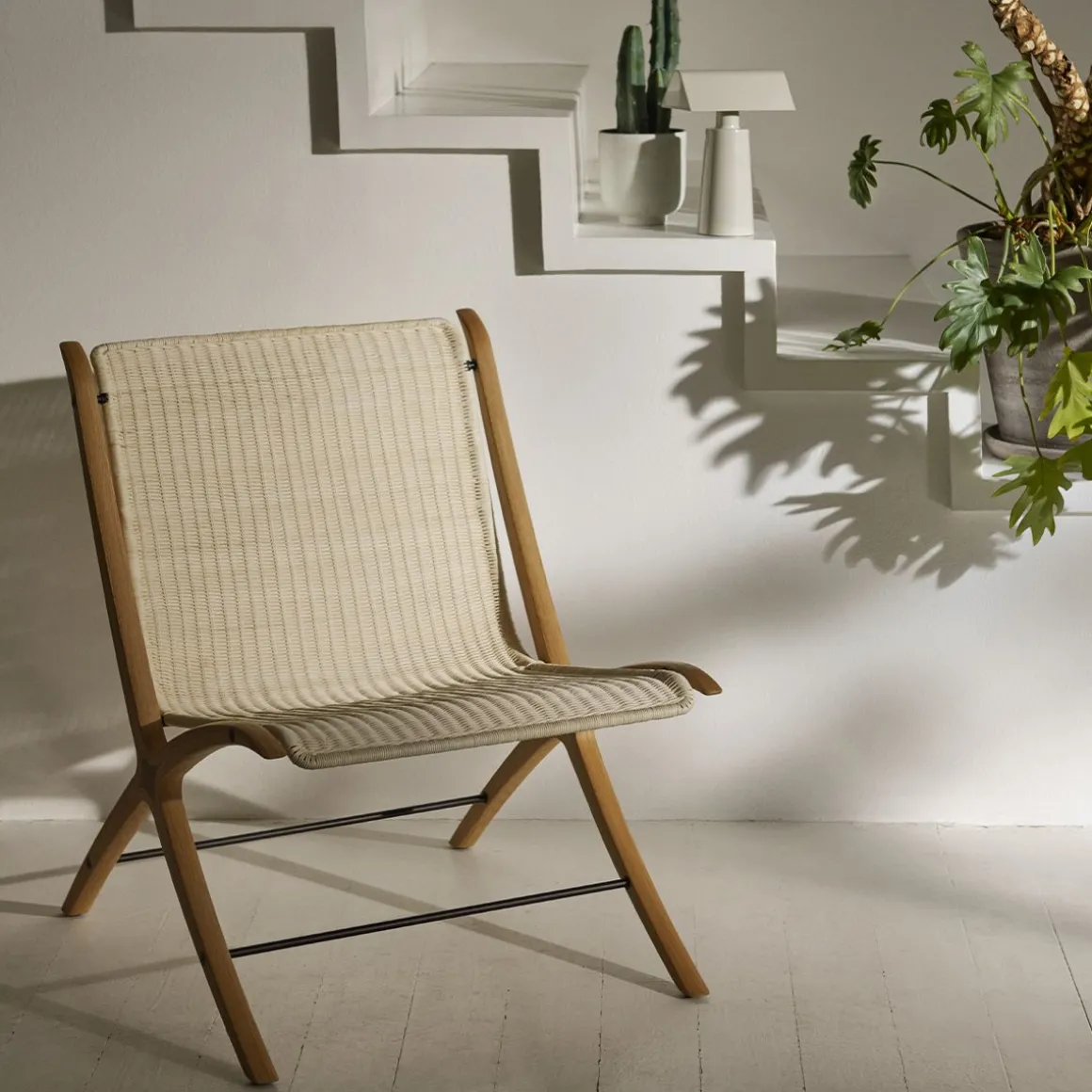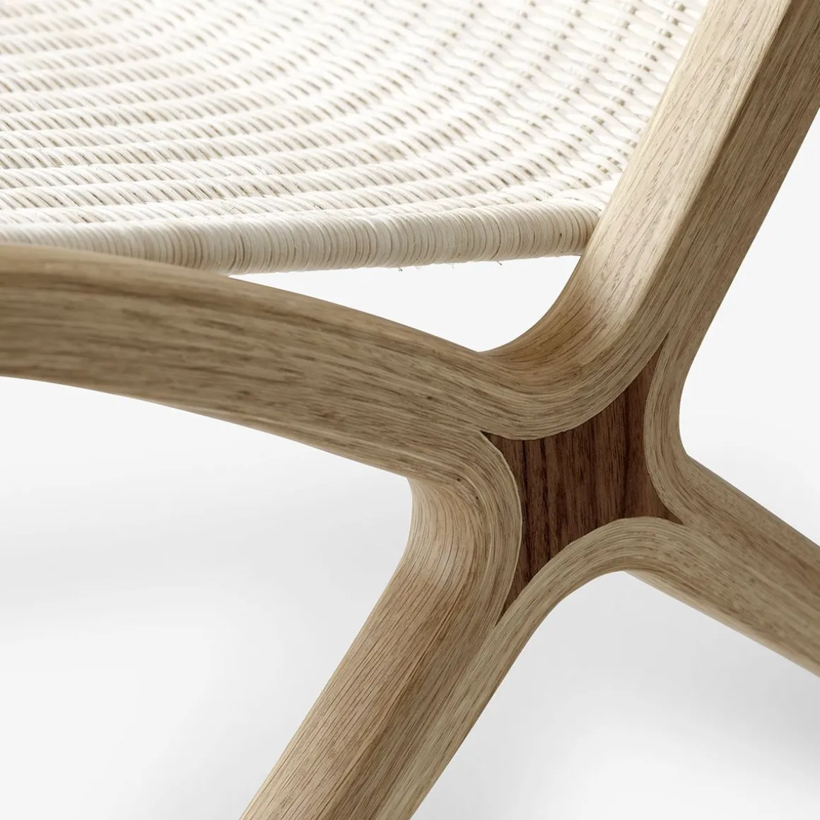 Après avoir expérimenté pendant des année le concept d’un cadre en bois stratifié inspiré des anciennes raquettes de tennis en bois, le duo de designers danois Hvidt & Mølgaard à lancé X en 1959, une chaise longue à la silhouette inclinée distinctive et à l’esthétique sobre.