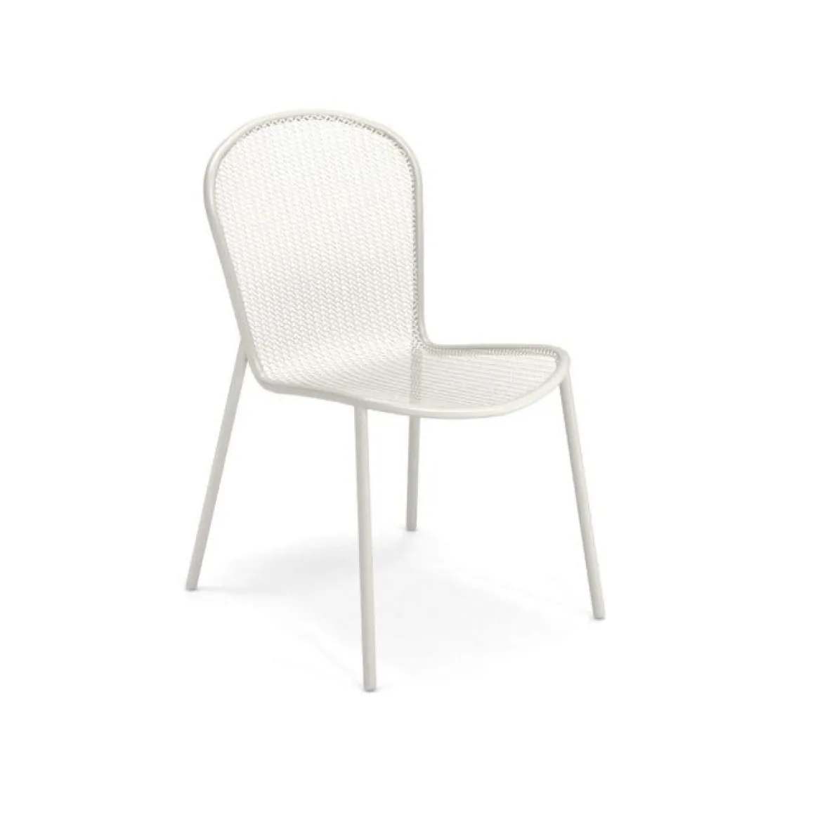 La collection Ronda XS se compose d’une chaise, d’un fauteuil et d’un tabouret. La structure est en tube de fer et la surface du dossier en métal déployé galvanisé à chaud. Semelles intérieures en nylon. Le drap est rendu doux par la forme, qui suit les courbes du corps, et par le dessin qui rappelle un tissu, une dentelle. Le fauteuil utilise des technologies modernes comme la double courbure, qui, tout en conservant la simplicité du simple tubulaire pour les jambes et les accoudoirs, permet d’amplifier le confort avec l’accoudoir qui se prolonge jusqu’au corps pour soutenir le coude. La forme de l’accoudoir rappelle les courbes du dossier et l’inclinaison vers le dos suit l’ergonomie de l’utilisateur. Grâce au jeu des tubes parallèles et des courbes entre la coque et l’accoudoir, le caractère enveloppant qui distingue le fauteuil émerge. Prétraitement, cataphorèse, finition en poudre thermodurcissable.