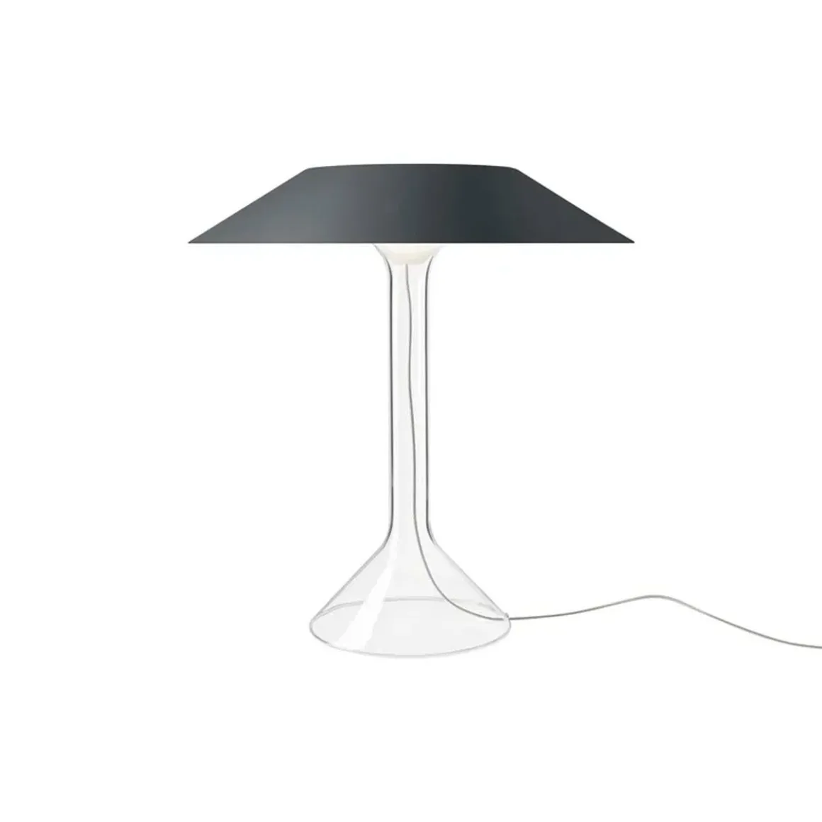 Matériaux : Verre borosilicate (pied), Acier peint (abat-jour)