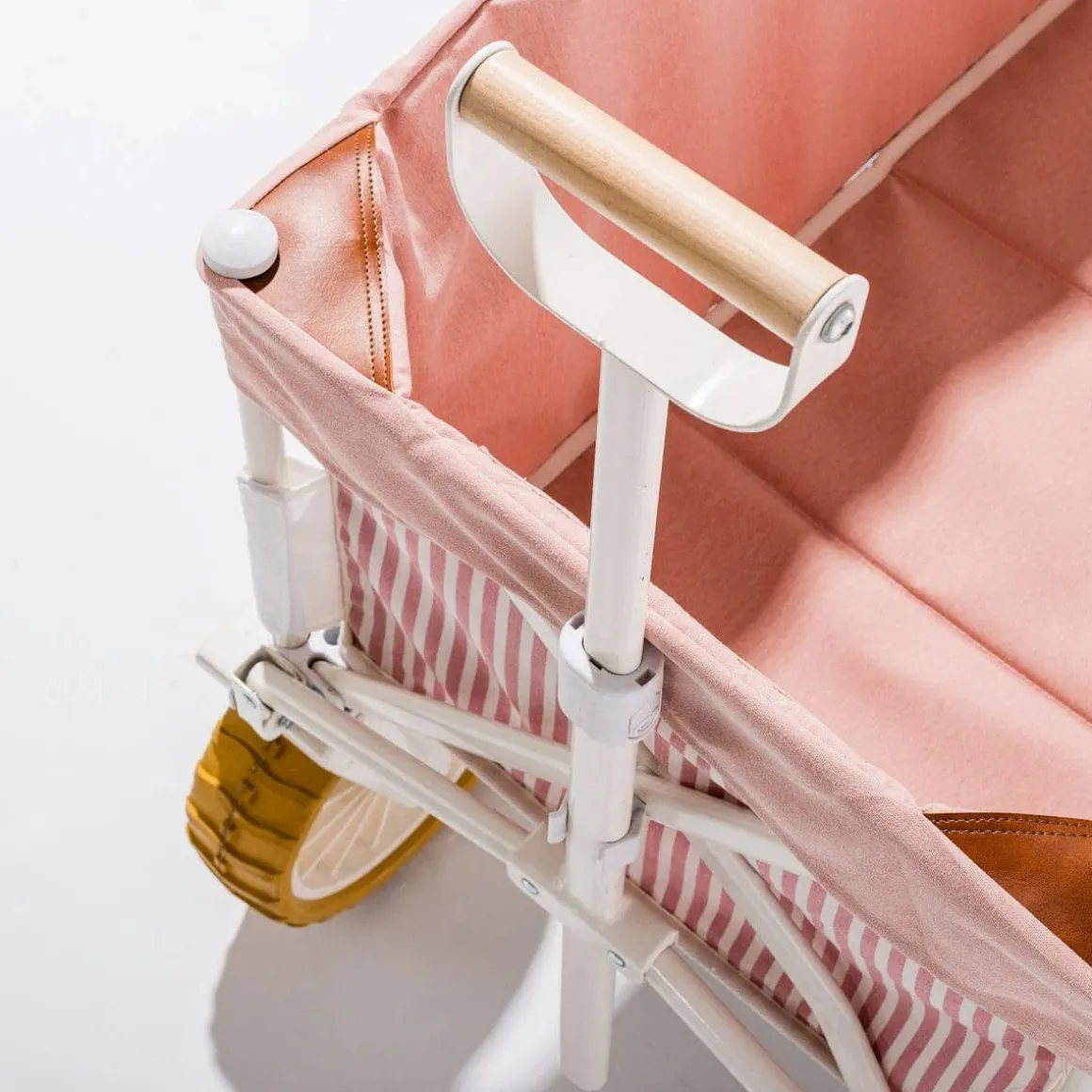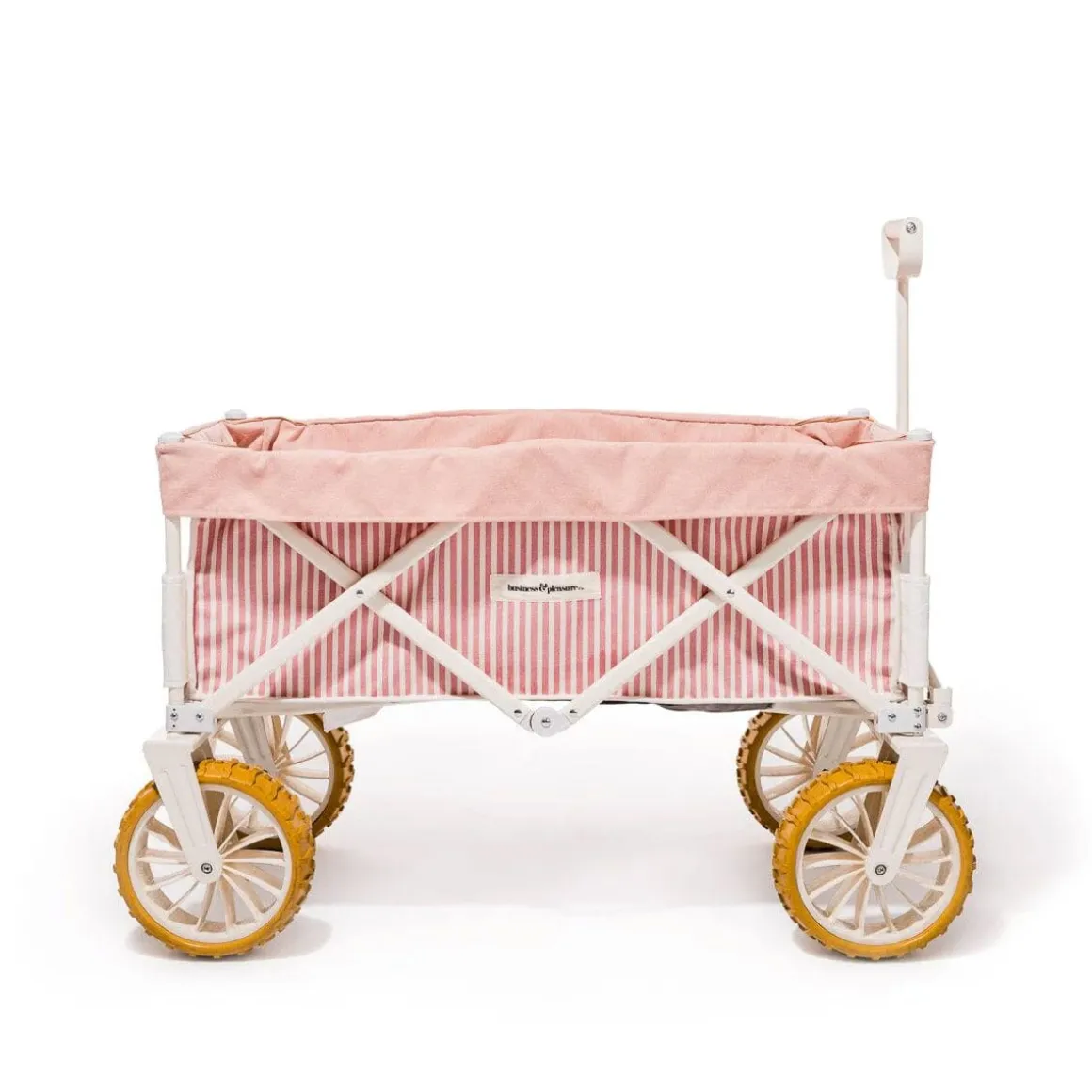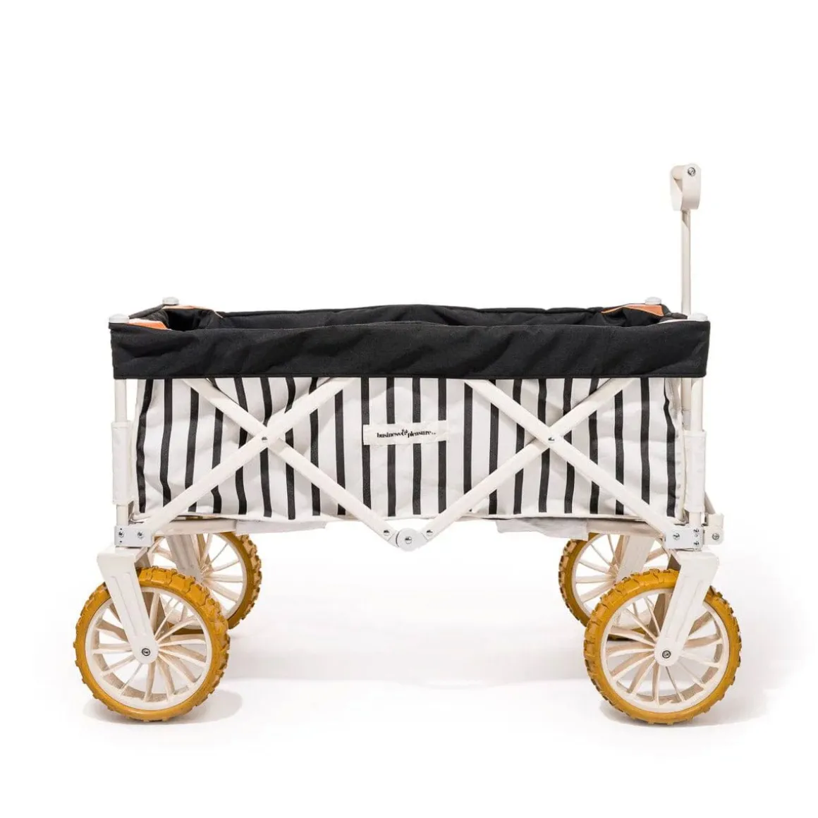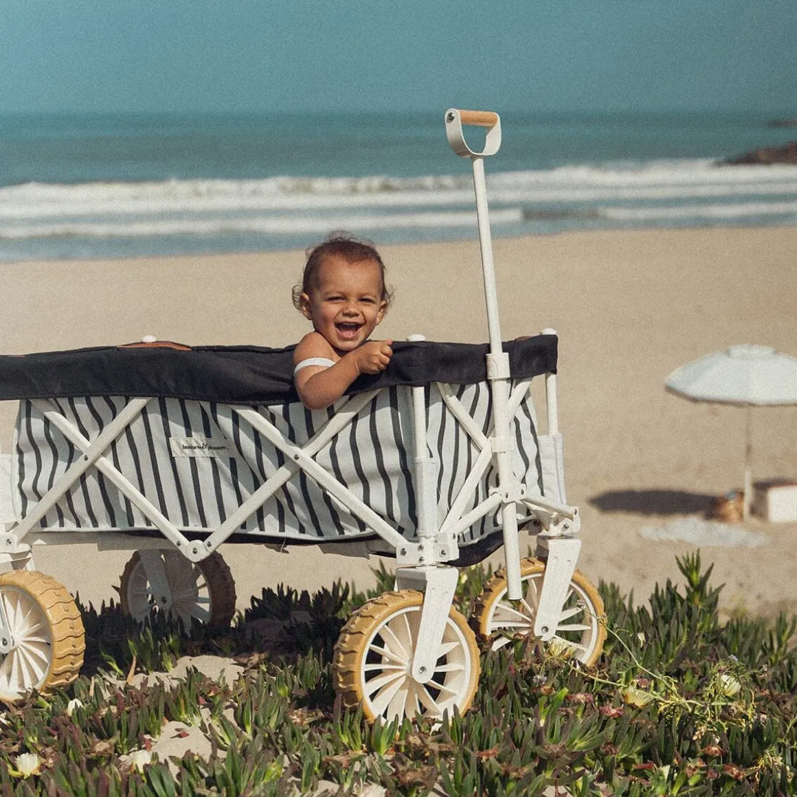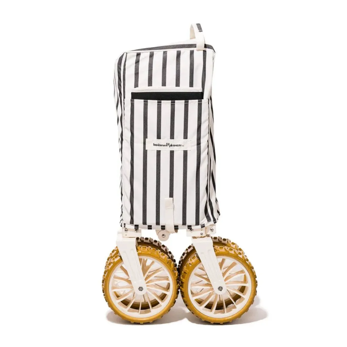 Chariot de plage de Business & Pleasure. Découvrez notre nouvel indispensable pour la plage : le chariot de plage au style Business & Pleasure. Compact et robuste, il est idéal pour les aventures en bord de mer. Doté de roues de sable spéciales et d’une poche arrière pratique, il est votre partenaire indispensable pour les journées à la plage.