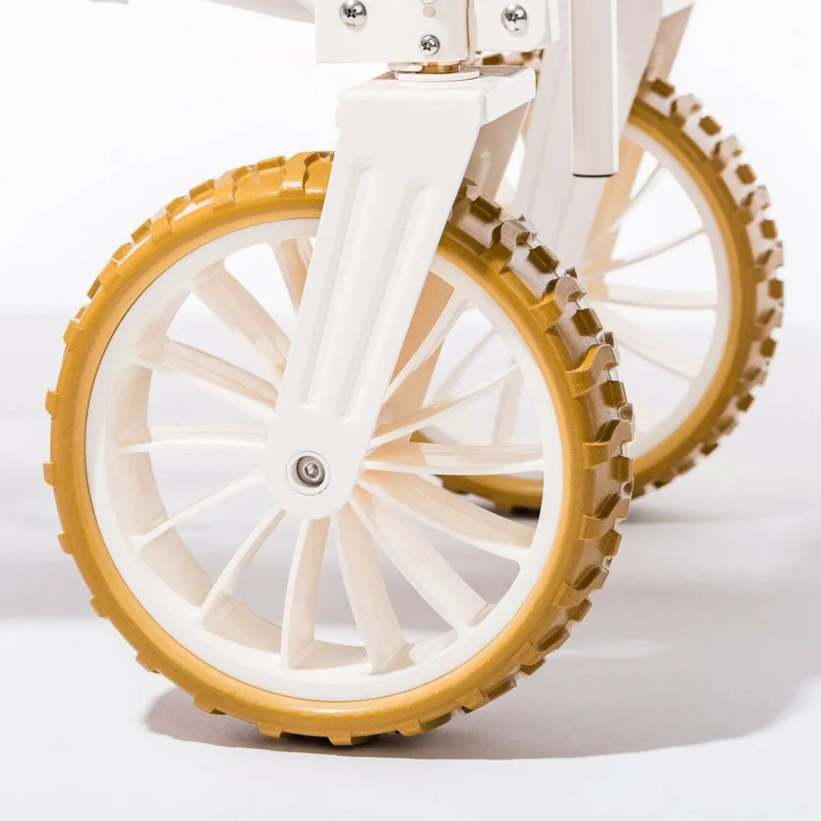 Roues de sable spécialisées : Fabriquées à partir de plastique et de caoutchouc recyclés, nos roues de sable entièrement personnalisées ont été conçues pour des performances optimales sur sable. Dotées d’une bande de roulement profonde, d’une grande surface et d’une circonférence supérieure à la normale, elles réduisent la traînée et améliorent l’efficacité.