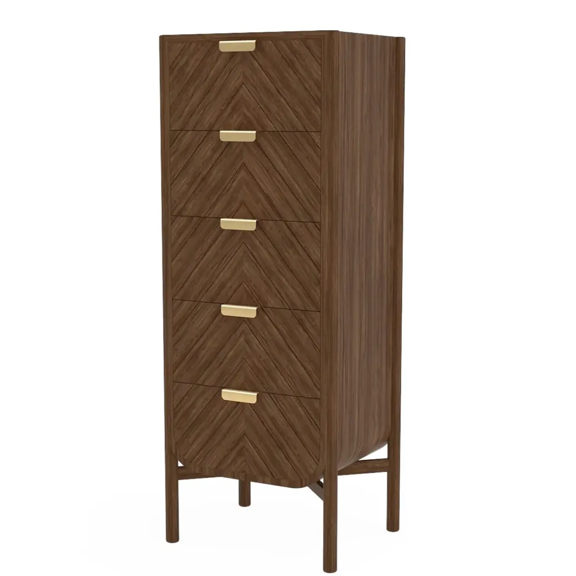 Le chiffonnier Marius, tel un pilier orné de rainures obliques, habille votre pièce de la présence solaire, stable et douce. Marius hisse la grand-voile tout au long de ses 4 tiroirs pour vous offrir plus que de simples rangements : Marius est un voyage contemplatif, une redécouverte de votre intérieur. Son design si juste, inspiré de l’univers maritime et des coques de bateaux, voguera avec grâce et poésie d’une pièce à une autre : dans une chambre ou une chambre d’enfant, dans une pièce à vivre, un bureau, une entrée. Le chiffonnier Marius sera partout chez lui et bercera vos pièces de sa douce présence. Le chiffonnier Marius est conçu au Portugal dans un atelier d’ébénisterie. Ses quatre tiroirs, en plaqué chêne clair, teinté noir ou noyer sont tous ornés d’une poignée en métal à la finition laiton brossé. Marius est une création du designer français de Pierre-François Dubois.