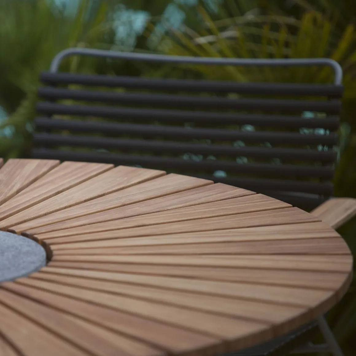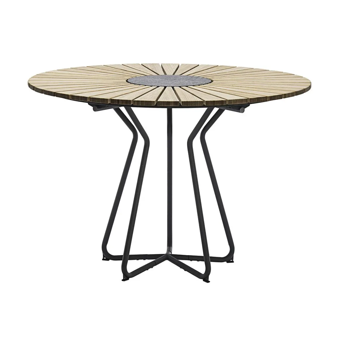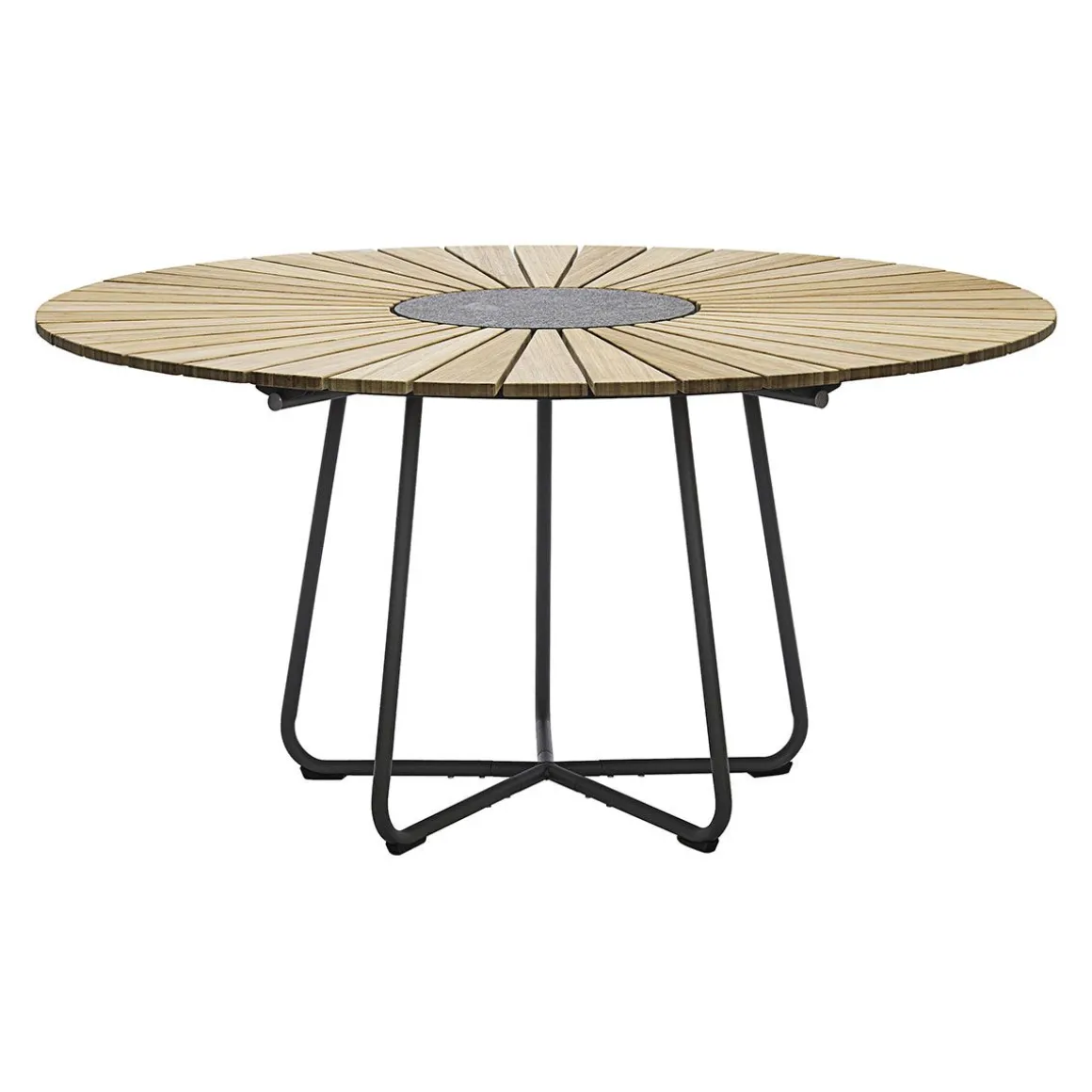 La table Circle pour l’extérieur est faite d’un plateau de lamelles en bambou et d’une base en acier laqué gris foncé. Une belle table bien proportionnée pour votre jardin qui permet de s’assoire librement car le design des pieds est fait pour fournir un confort parfait pour les jambes. La table Circle peut facilement accueillir entre 6 et 10 personnes suivant le modèle. Une pierre décorative en granite se trouve dans le centre de table pour accueuillir les plats chauds. Le dessus de table en bambou est pré-huilé.