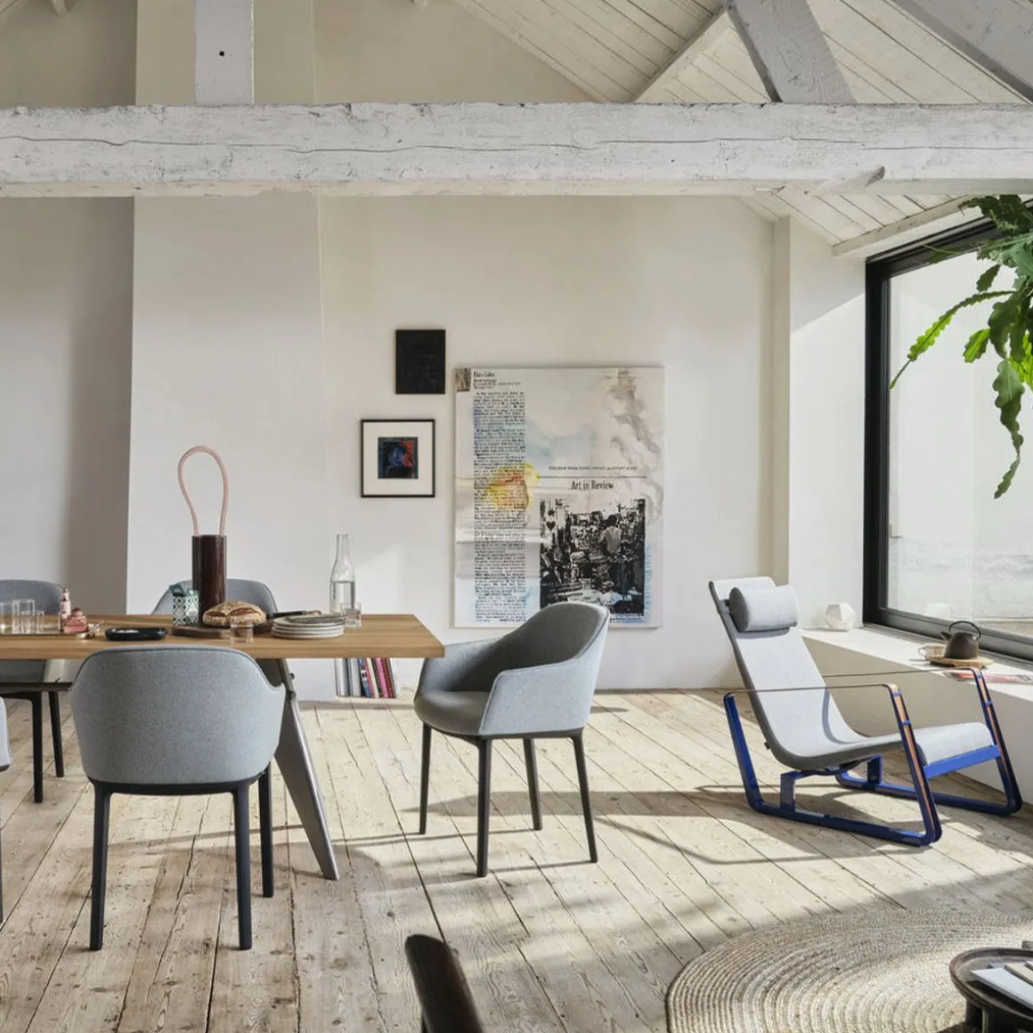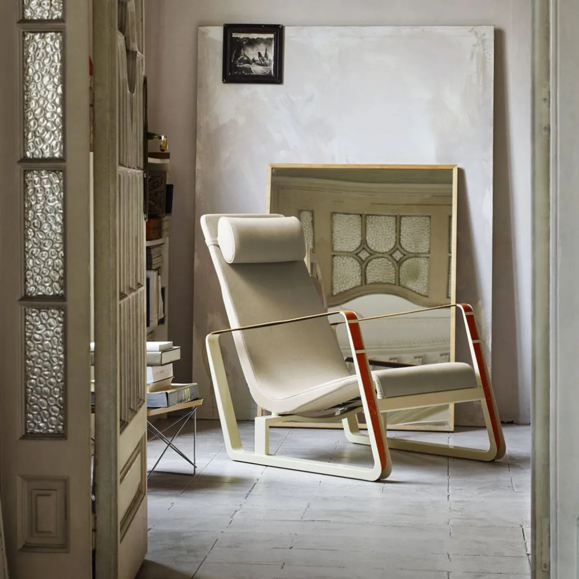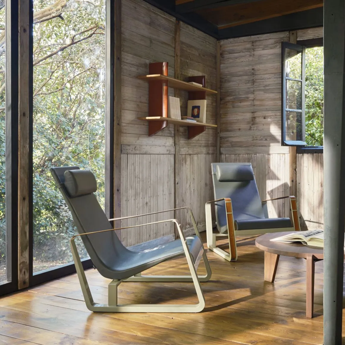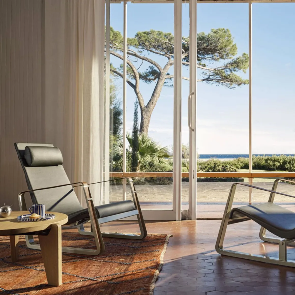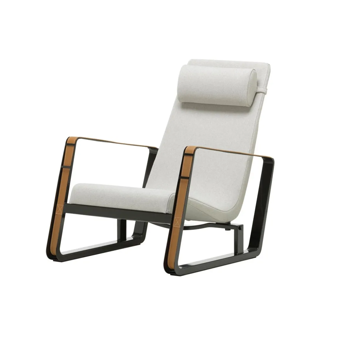 Conçu dans le cadre d’un concours pour l’ameublement des chambres de la cité universitaire de Nancy, le fauteuil Cité compte parmi les premiers chef-d’oeuvre de Jean Prouvé. Prouvé lui-même utilisait ce fauteuil aux lignes dynamique, avec ses patins caractéristiques en tôle laquée et ses accoudoirs formés par de larges courroies de cuir, dans son salon. Des dimensions généreuses et un rembourrage accueillant contribuent au confort de Cité.