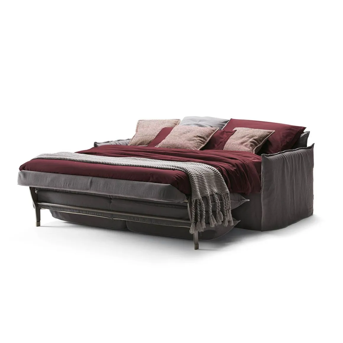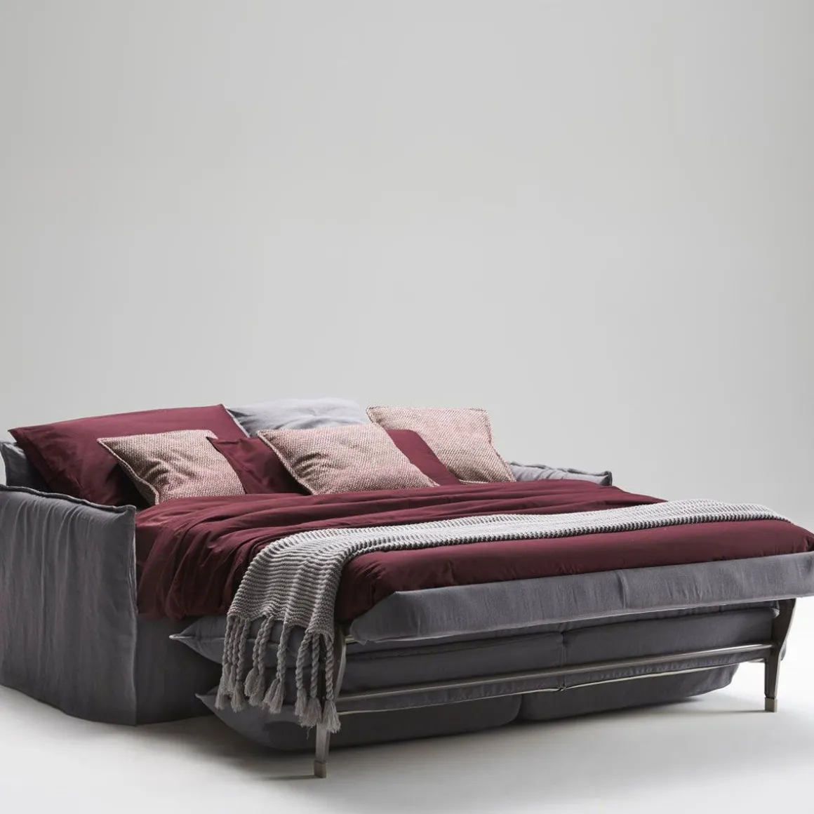 Le mécanisme Lampolet permet de déplier et refermer le canapé convertible d’un seul mouvement rapide, sans enlever les coussins. Les matelas, épais 16/18 ou 14 cm sont disponibles, en fonction du modèle souhaité, à ressorts biconiques, ressorts indépendants ensachés, polyuréthane, mousse à mémoire de forme et latex. La hauteur de 18 cm permet d’utiliser le canapé fréquemment pour s’offrir un sommeil réparateur. Enfin, pour un maximum de confort il est possible de choisir le sommier à lattes, disponible avec supports auto-réglants adaptables aux formes et au poids du corps.