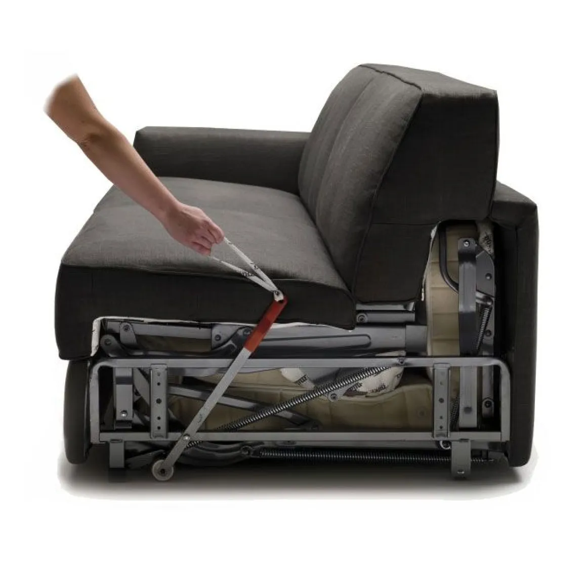 Mécanisme : Tube d’ameublement haute résistance laqué au four avec de la poudre époxy. Sommier en maille d’acier électrosoudé et plastifié, fixé à la structure par des ressorts. Assise moelleuse avec sangles élastiques ou en tissu polypropylène (taille 180 cm uniquement). Ouverture et fermeture du mécanisme en un seul temps.