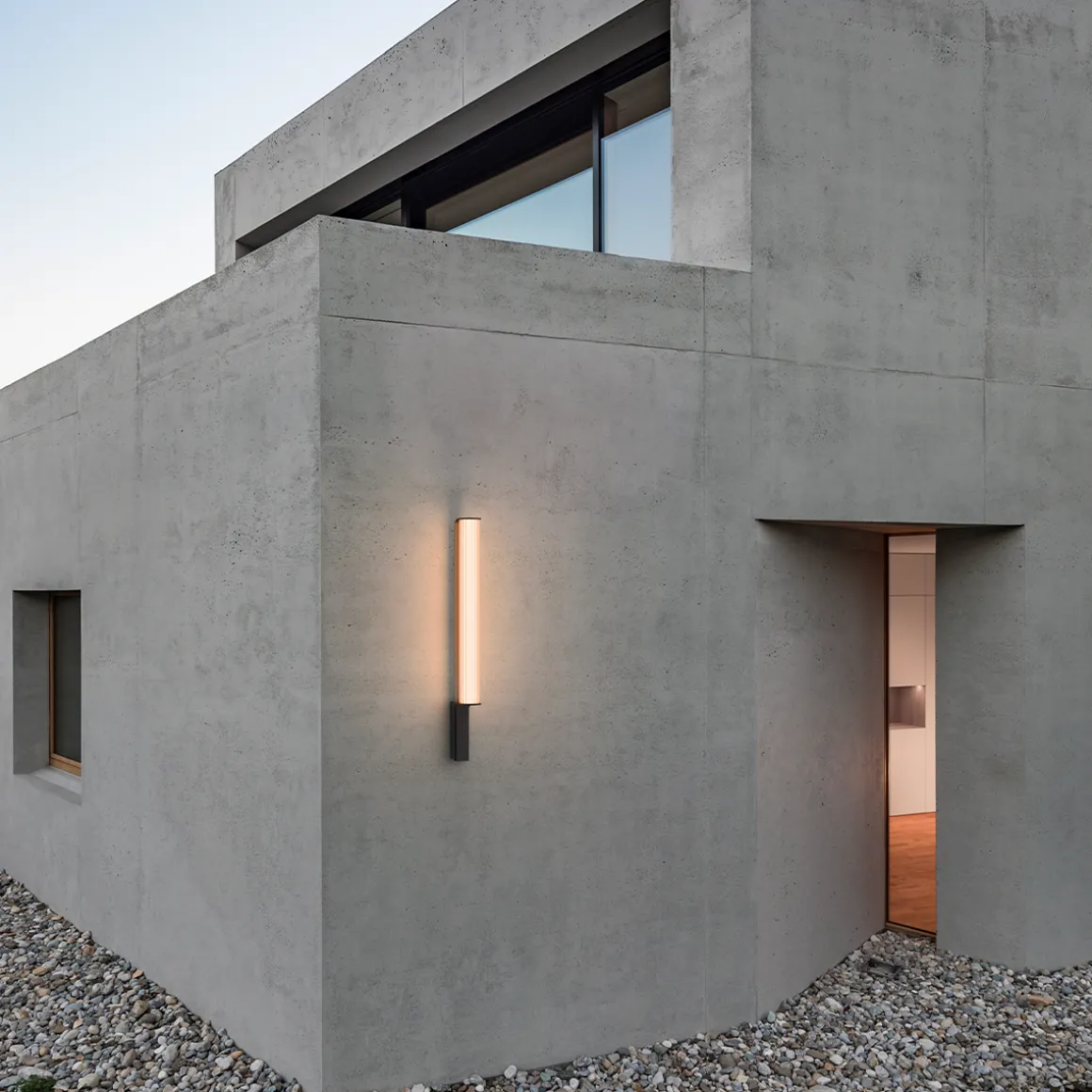 Class de Vibia par Sebastian Herkner. Intemporelle, élégante et robuste, l’applique murale Class a quelque chose de nostalgique. Son tube en verre translucide est cannelé et strié de rainures qui laissent doucement passer la lumière tout en dissimulant la source. Le tube de le lampe d’extérieur Class repose sur un solide socle en aluminium noir mat qui joue de contraste avec la douceur des tubes en verre, le tout présentant un mariage harmonieux de textures qui n’est pas sans rappeler la lampe à gaz traditionnelle.
