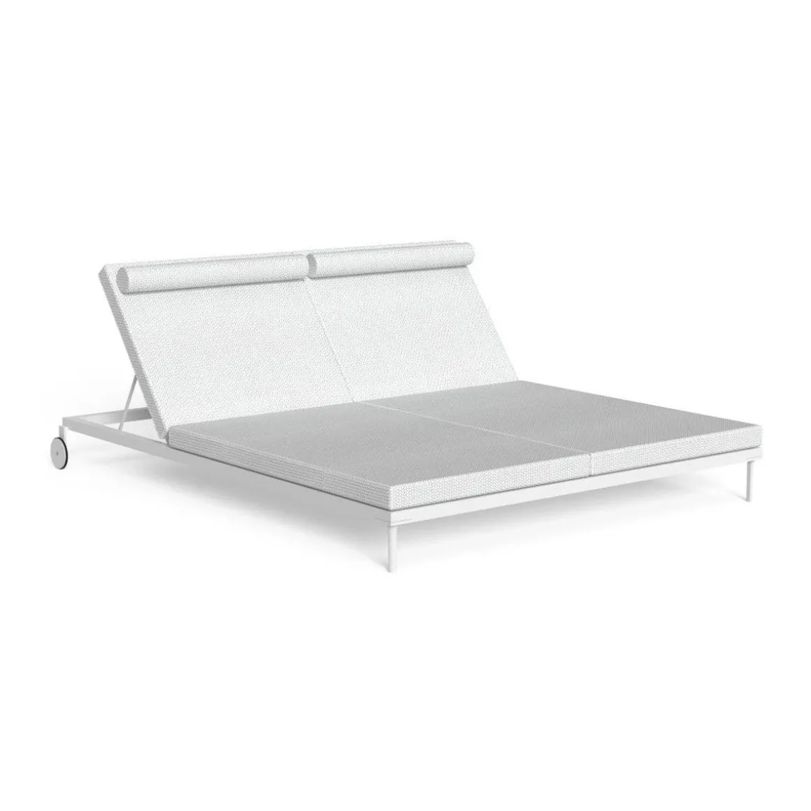 Le bain de soleil double de la collection CleoSoft Alu permet de savourer à deux un moment de relax. La double assise, large et accueillante, est réalisée dans un tissu facile à laver et résistant aux agents atmosphériques, avec un rembourrage en mousse quick dry foam. La structure est en aluminium, qui assure la stabilité du produit. Dossier inclinable sur les deux places. Ce bain de soleil est facile à déplacer, car équipé de roulettes, et facile à ranger, car empilable.