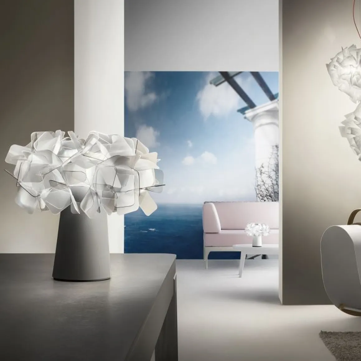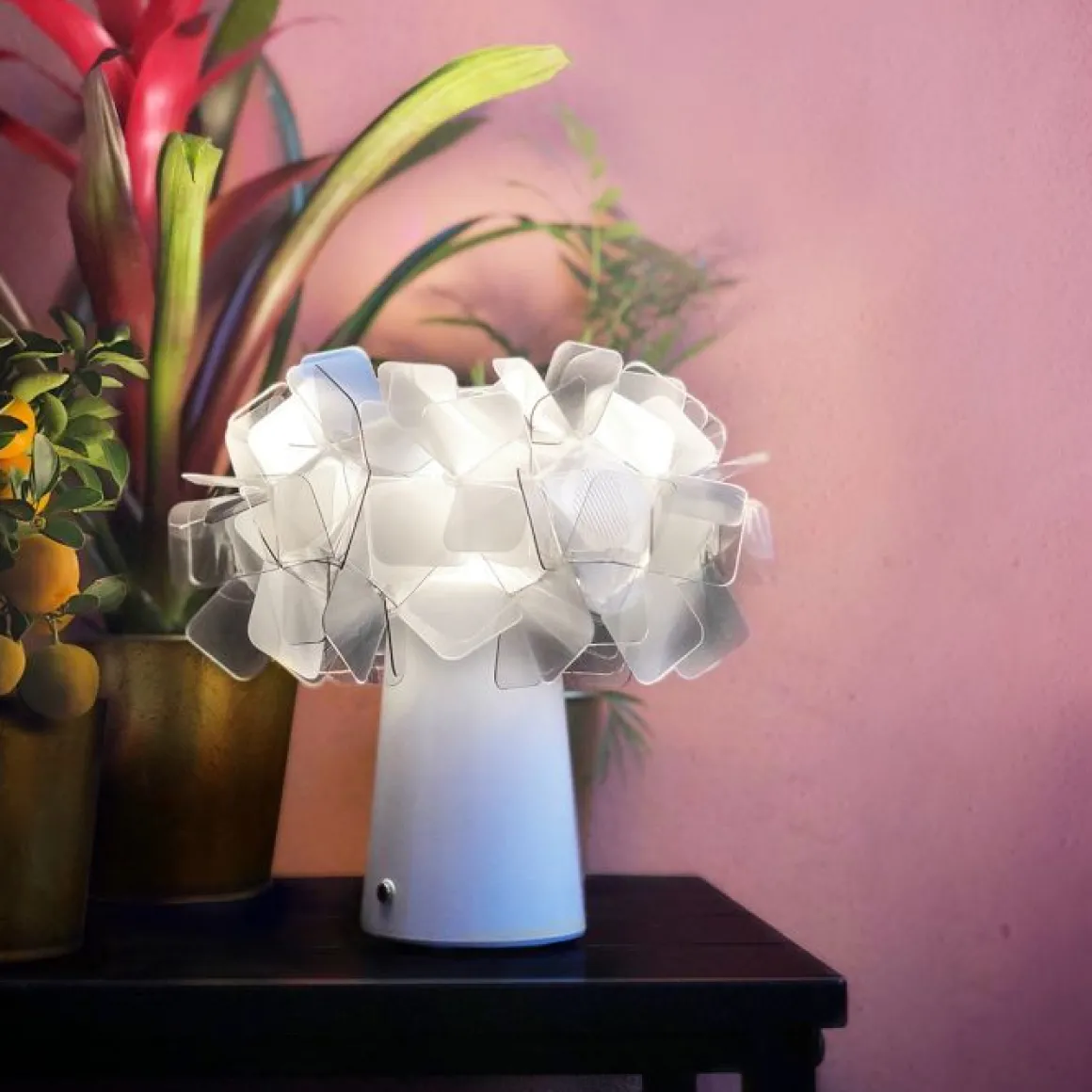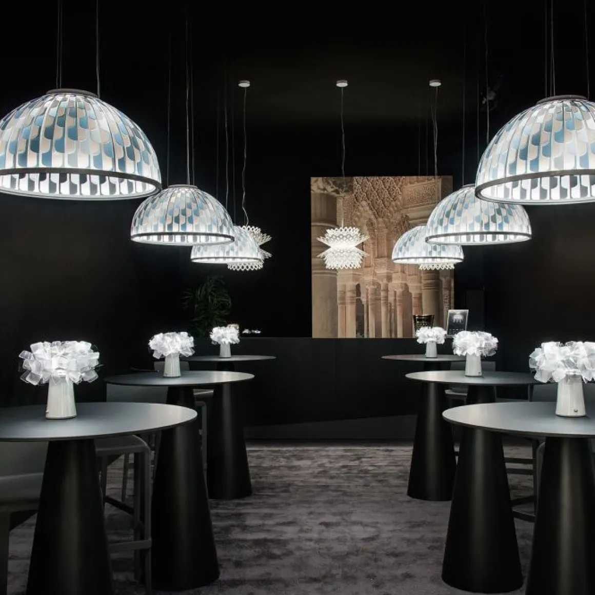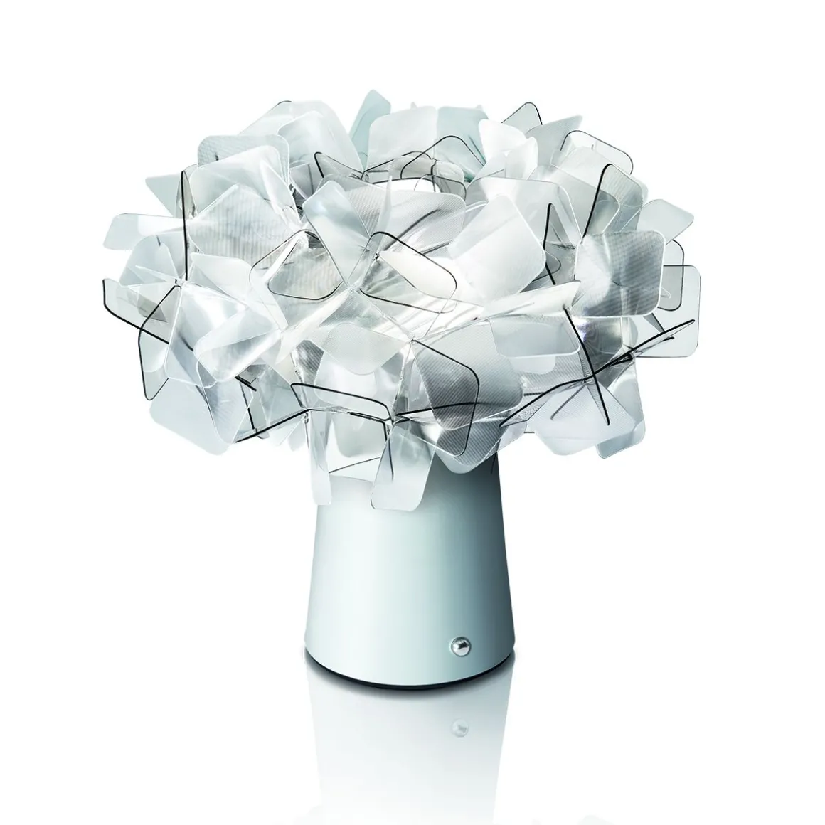 Des formes régulières, encastrées selon un équilibre parfait de transparence et de reflets, composent le design e Clizia. Cette lampe reprend les formes de la nature : c’est un nuage qui capture la lumière du soleil aux premières heures du jour et qui se charge de reflets chatoyants, c’est la cime d’un arbre à travers laquelle filtre la lune en créant des jeux d’ombres. Les versions dans lesquelles elle est disponible conjuguent esthétique et fonctionnalité : toutes sont dotées d’un support magnétique qui ancre la lampe aux surfaces (plafonnier et suspension) ou à sa base métallique (de table ou de terre). Clizia est un paysage qui ravive les ambiances sans les envahir de sa présence.