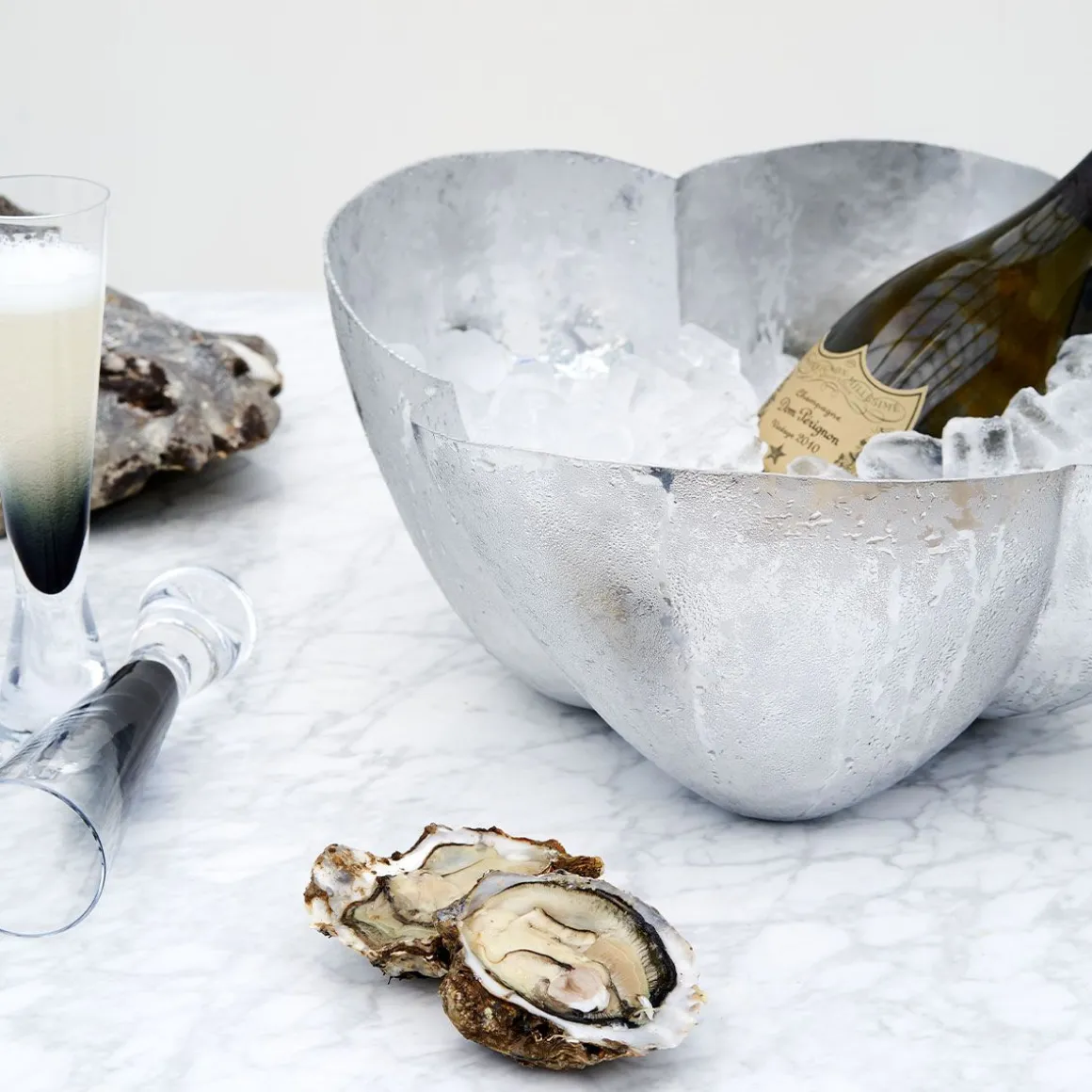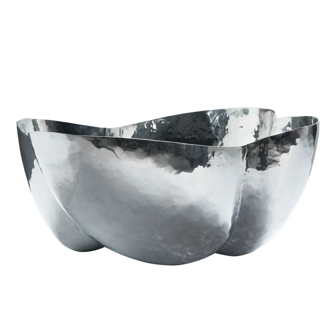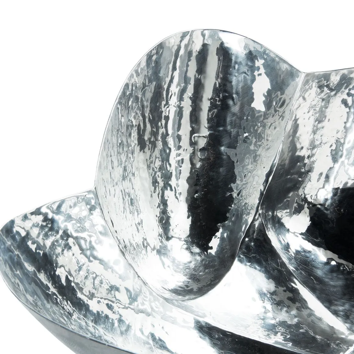 Cloud est une famille de pièces bulbeuses et sculpturales en aluminium poli hautement réfléchissant. La collection comprend un plateau, un bol, un récipient court et haut qui sont des objets artisanaux expressifs qui sont martelés et braisés en Inde par des artisans qualifiés. L’expérience de Tom dans le travail du métal et sa fascination pour les compétences disparates du battage de panneaux à main ont inspiré l’esthétique de la gamme.