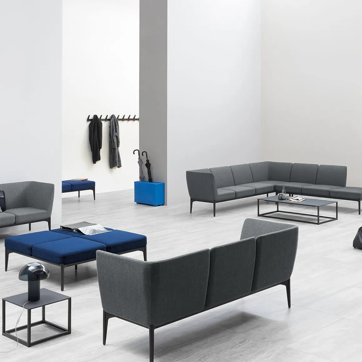 Code est une collection de tables, idéales pour meubler des endroits lounge et les halls d’hôtel. Plateau est stratifié fort-épaisseur 10 mm, structure en tube carré 20X20 mm époxy. Disponible ou blanc ou noir et en différentes dimensions.