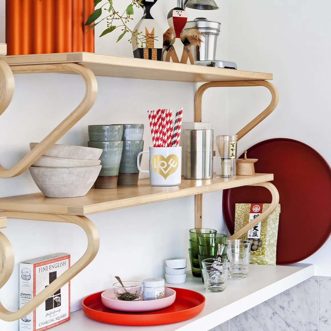 Le designer Alexander Girard compte parmi les personnalités marquantes de l’histoire du design américain de l’après-guerre, au même titre que ses collègues George Nelson et Charles et Ray Eames. L’oeuvre de Girard était axée avant tout sur le design textile, mais il fut également admiré pour son art graphique ainsi que pour ses travaux en tant que créateur de mobilier, scénographe et designer d’intérieur. Girard a apporté au design du XXe siècle une dimension séduisante et ludique qui manquait à l’esthétique austère du modernisme classique. En sa qualité d’architecte d’intérieur, Girard a élaboré bon nombre de concepts pour des restaurants, qui allaient bien au-delà des gammes de couleurs et du mobilier et englobaient des détails tels que les cartes de menu, les boîtes d’allumettes, la vaisselle et les serviettes. Les motifs figurant sur les Coffee Mugs ont trouvé leur origine et leur inspiration dans la richesse de ces environnements variés.