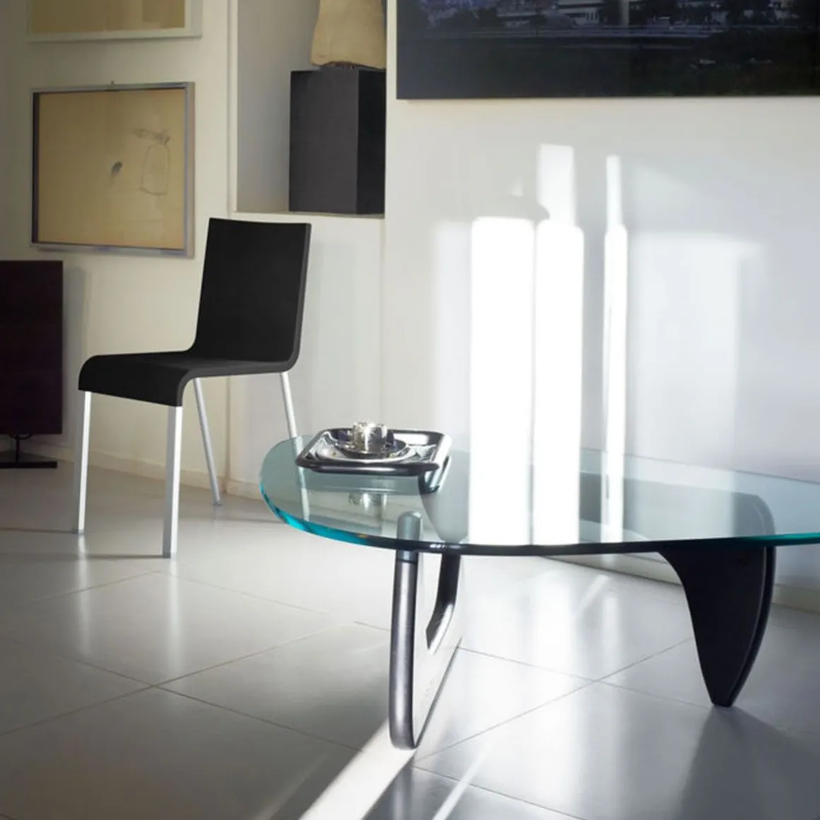 Noguchi lui-même considérait la Coffee Table comme sa création de mobilier design la plus réussie, notamment parce qu’elle rappelle beaucoup les sculptures en bronze et marbre qu’il créait à l’époque et qu’elle transpose de manière authentique les éléments biomorphiques de leur langage formel dans un meuble à l’esthétique sculpturale. Un lourd plateau de verre d’épaisseur repose sur deux pieds identiques disposés à angle droit. La Coffee Table de Vitra est idéale pour habiller votre intérieur d’une touche moderne.