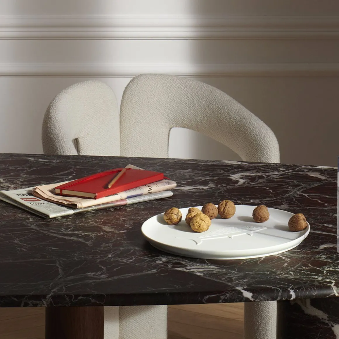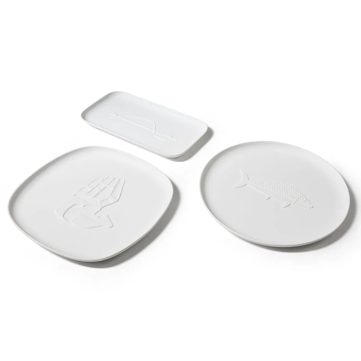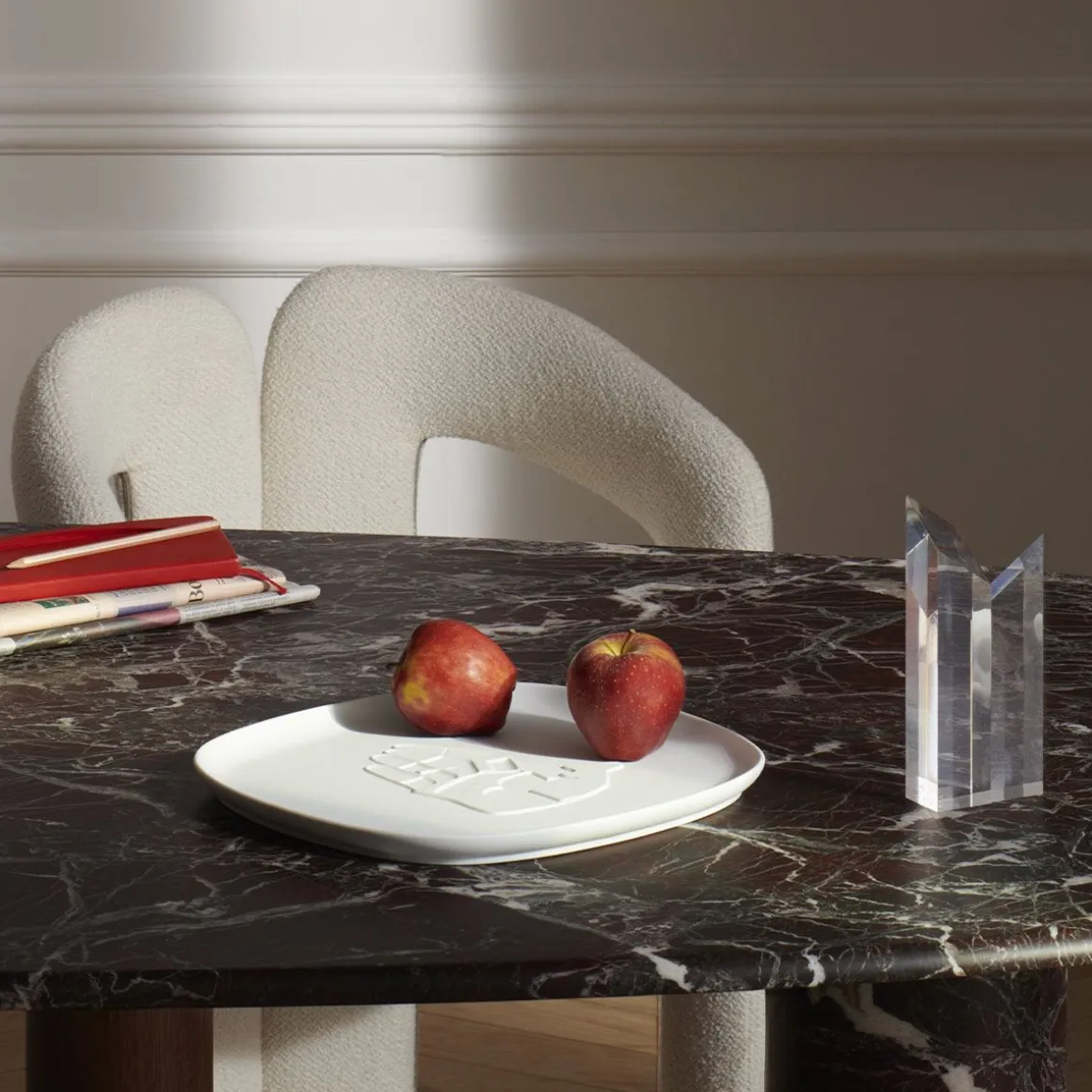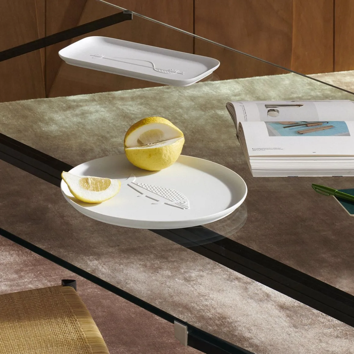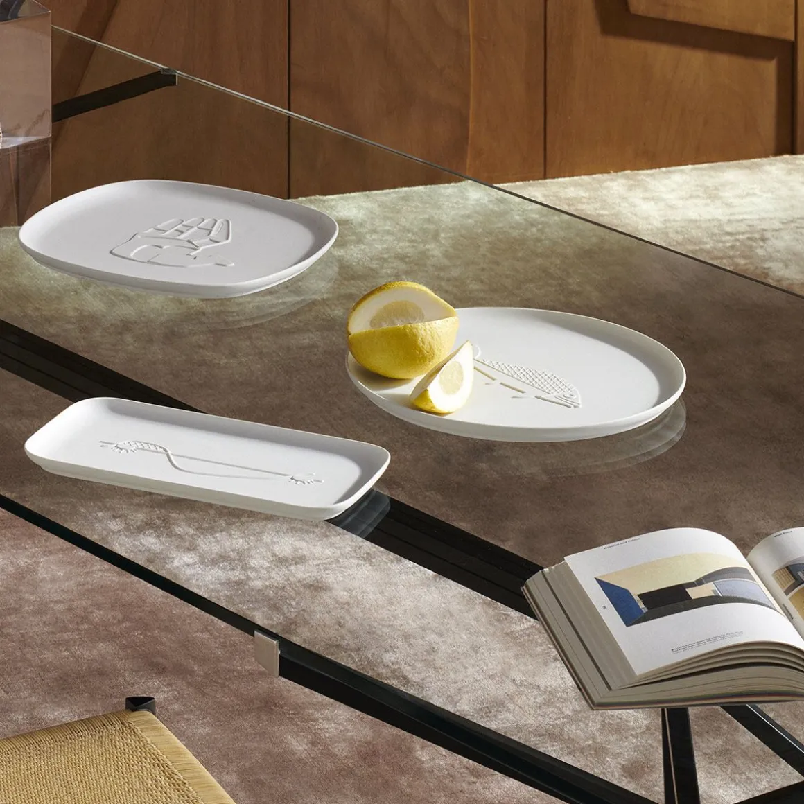 Cassina s’inspire du génie de Le Corbusier pour une collection de trois plateaux modernes en pure porcelaine non émaillée, qui reprennent certains dessins symboliques en bas-relief, tirés du répertoire figuratif de la ville de Chandigarh.