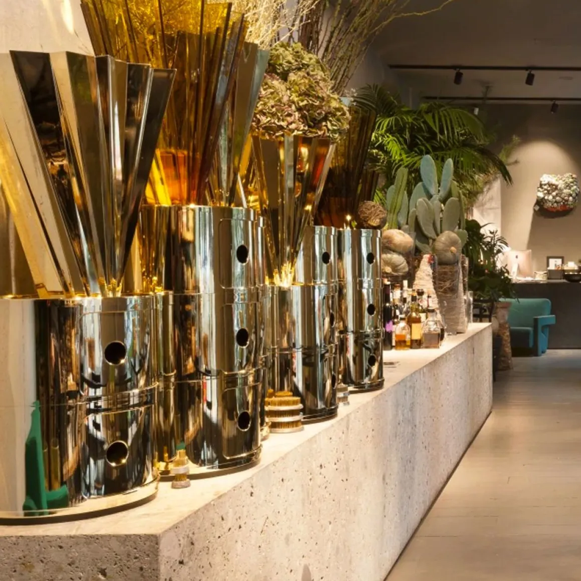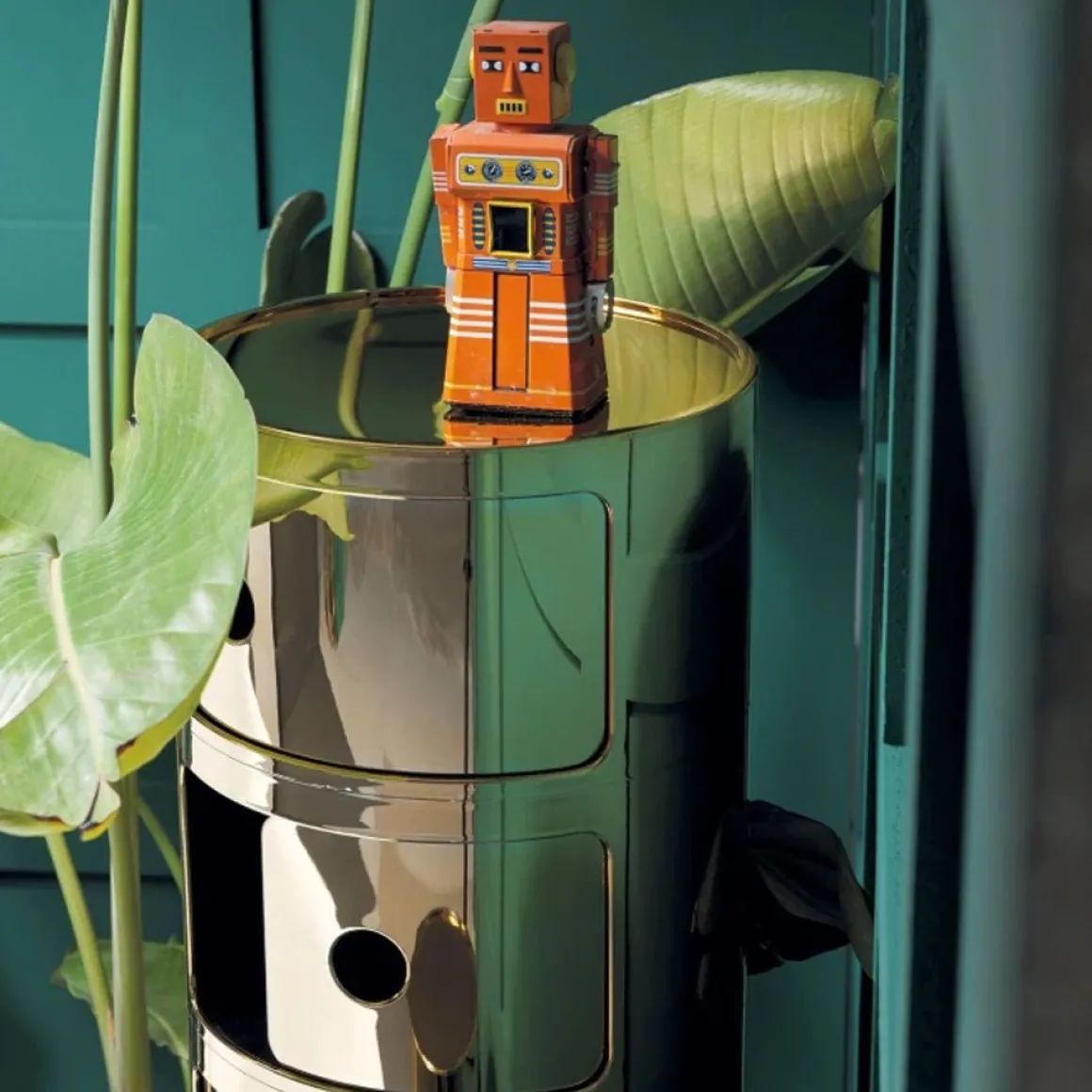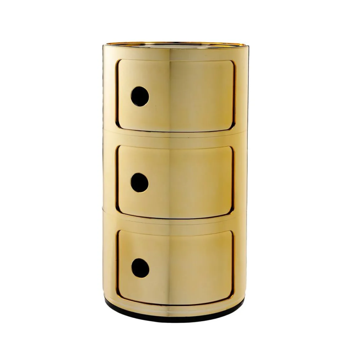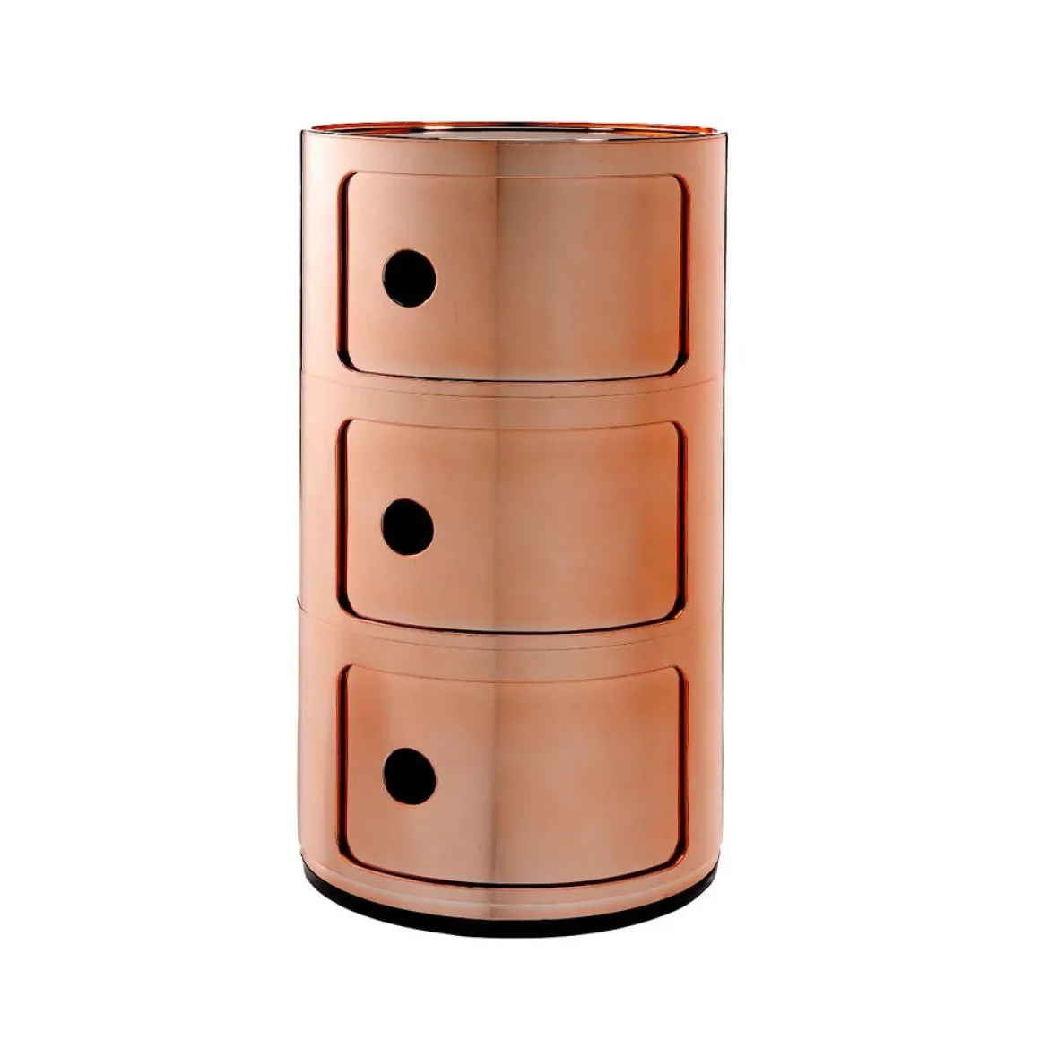Componibili est un élément de rangement pensé par Anna Castelli Ferrieri pour Kartell. Ces éléments modulables ont été conçus afin de répondre à diverses exigences d’utilisation et pour trouver place dans toutes les pièces de la maison. Flexibles, fonctionnels, pratiques, les éléments modulables sont produits depuis plus de trente ans et ont reçu de multiples marques de reconnaissance pour la valeur et l’innovation du projet (ils sont exposés au Museum of Modern Art de New York et au Centre Pompidou à Paris). Le componibili prend également le look Precious Kartell avec ses finitions chromée, or et cuivre. Avec les nouvelles finitions brillantes et métallisées dans les tons or, cuivre et chromé, le produit Kartell devient un véritable objet de luxe. Les Componibili s’enrichissent de nouvelles finitions métal qui donnent une allure inédite à quelques-uns des grands classiques Kartell.