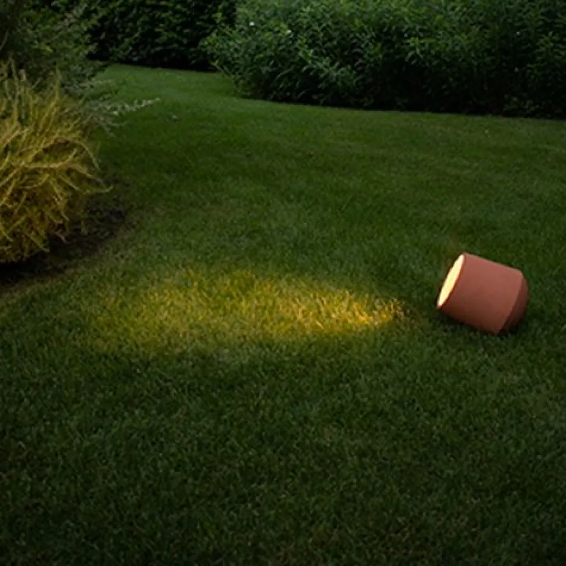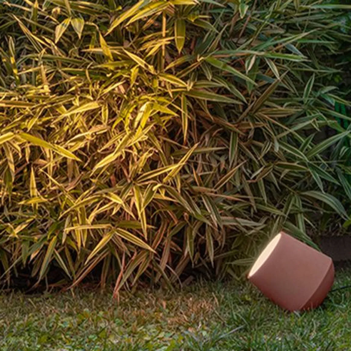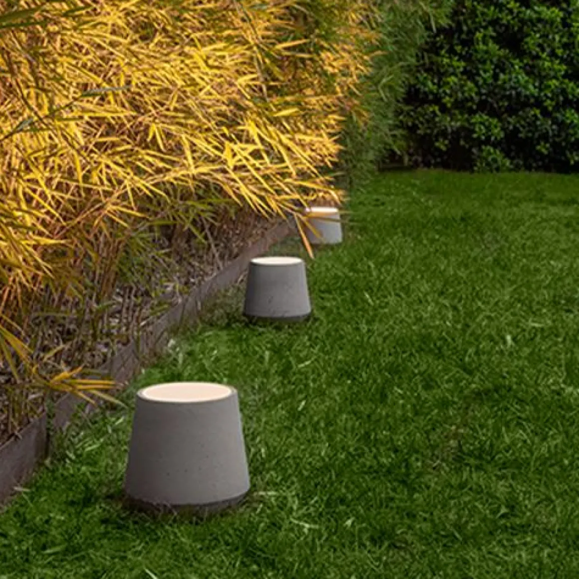 Monolithe en béton coulé par gravité, il abrite la source lumineuse à l’intérieur : une lumière douce pour mettre en valeur les surfaces, la végétation, les allées. La forme, le matériau et les couleurs obtenus en masse, permettent à Concreta de s’insérer dans différents contextes, en respectant la nature et l’architecture.