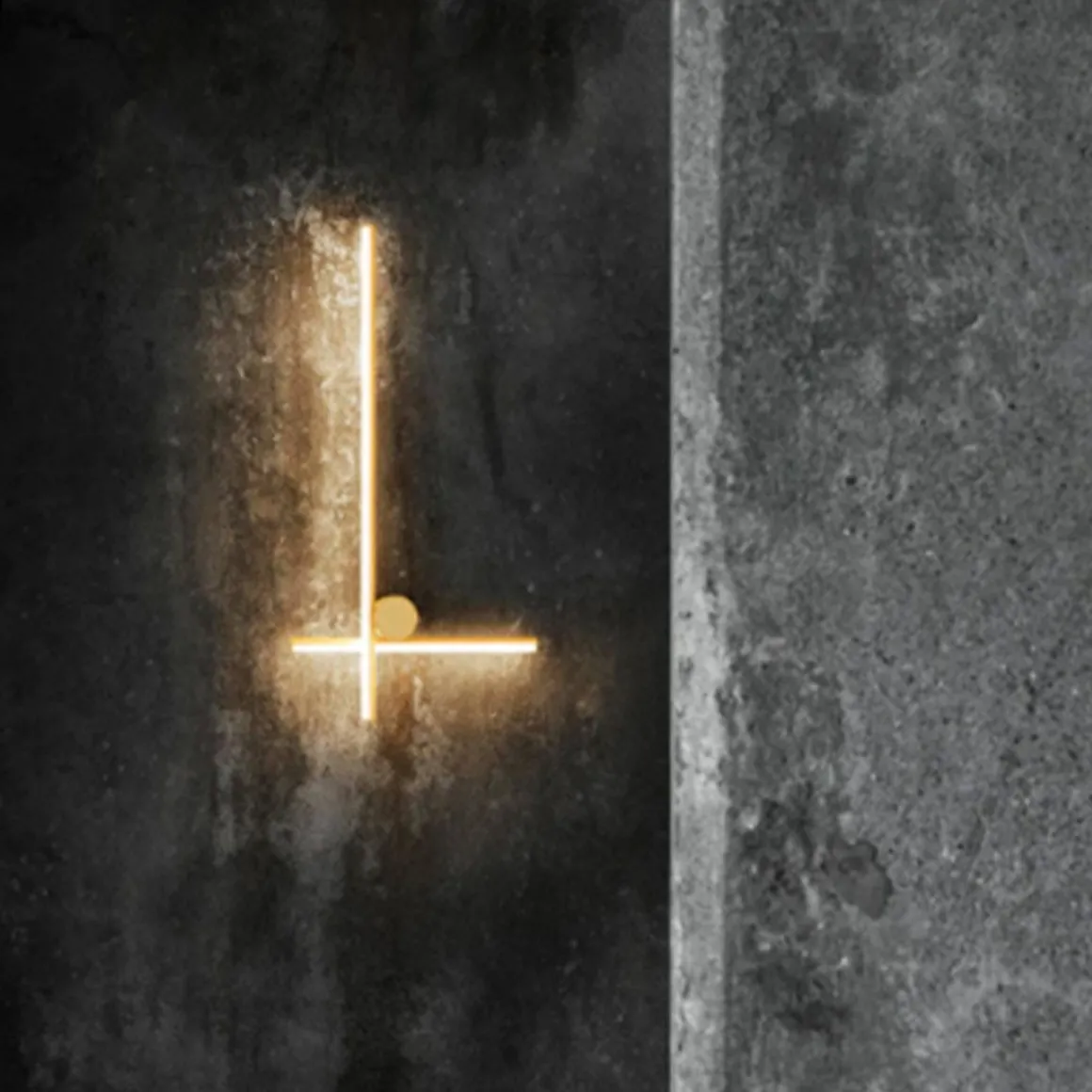 Appareils d’éclairage à lumière diffuse pour installation murale composés d’un mât horizontal (modèle Wall 1) ou d’un mât vertical et horizontal (modèle W2). Chaque mât est constitué d’un corps en aluminium extrudé usiné et anodisé coloris champagne et d’un diffuseur en silicone optique platinum strié intégré (CRI 90). Chaque modèle comprend sa propre rosace dont l’électronique intégrée permet l’utilisation de différents systèmes de variation.