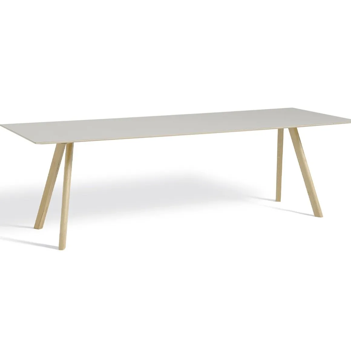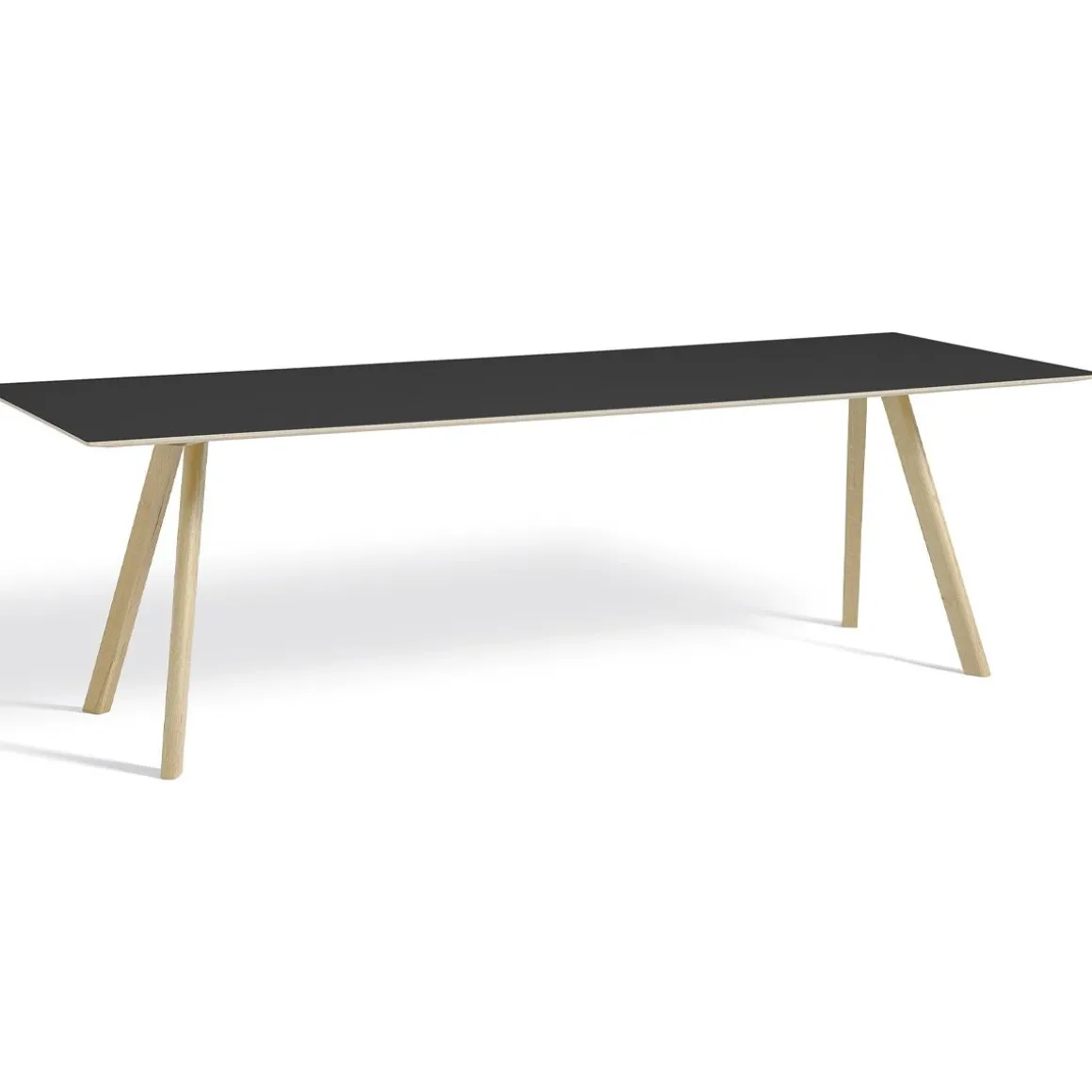 Copenhague table CPH30 – Pied chêne laqué 250×90 cm de Hay Erwan et Ronan Bouroullec. Appelés par la maison d’édition Hay pour ce projet de mobilier scolaire, Erwan et Ronan Bouroullec ont joué la carte de la simplicité et de la fonctionnalité, reprenant certains codes de l’architecte Pedersen, notamment l’esprit tréteau. Le bois est le matériau star de cette ligne au style épuré, composée d’une chaise, un tabouret et plusieurs modèles de tables. Avec cette collection Copenhague, les frères Bouroullec révèlent tout le potentiel design du bois, qui s’intègre très bien dans un intérieur contemporain. La table Copenhague est composée d’un plateau en chêne recouvert de lino, fixé sur un piètement tréteau en chêne massif. Cette table de salle à manger peut être accompagnée des chaises colorées de la même collection. Grâce à son plateau recouvert de linoléum, elle ne craint pas les tâches et se nettoie parfaitement d’un simple coup d’éponge. Cette table originale et design s’adaptera parfaitement à différents types d’intérieurs pour un effet très tendance !