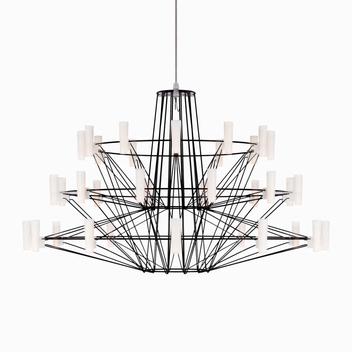 Le designer Arihiro Miyake nous présente la version contemporaine d’un lustre. Ses courbes délicates et ses 36 LED ou 54 LED semblabes à de petites chandelles s’entrecroisent entre elles et forment de magnifiques motifs géométriques. Cette suspension fait preuve d’une grande originalité. Son diamètre de 68 cm ou 101 cm fait d’elle la pièce parfaite pour éclairer votre intérieur, notamment les diners en famille. Sa structure design habillera votre plafond de façon aérienne. Pour renforcer le côté suspendu dans l’espace, le fil est transparent.