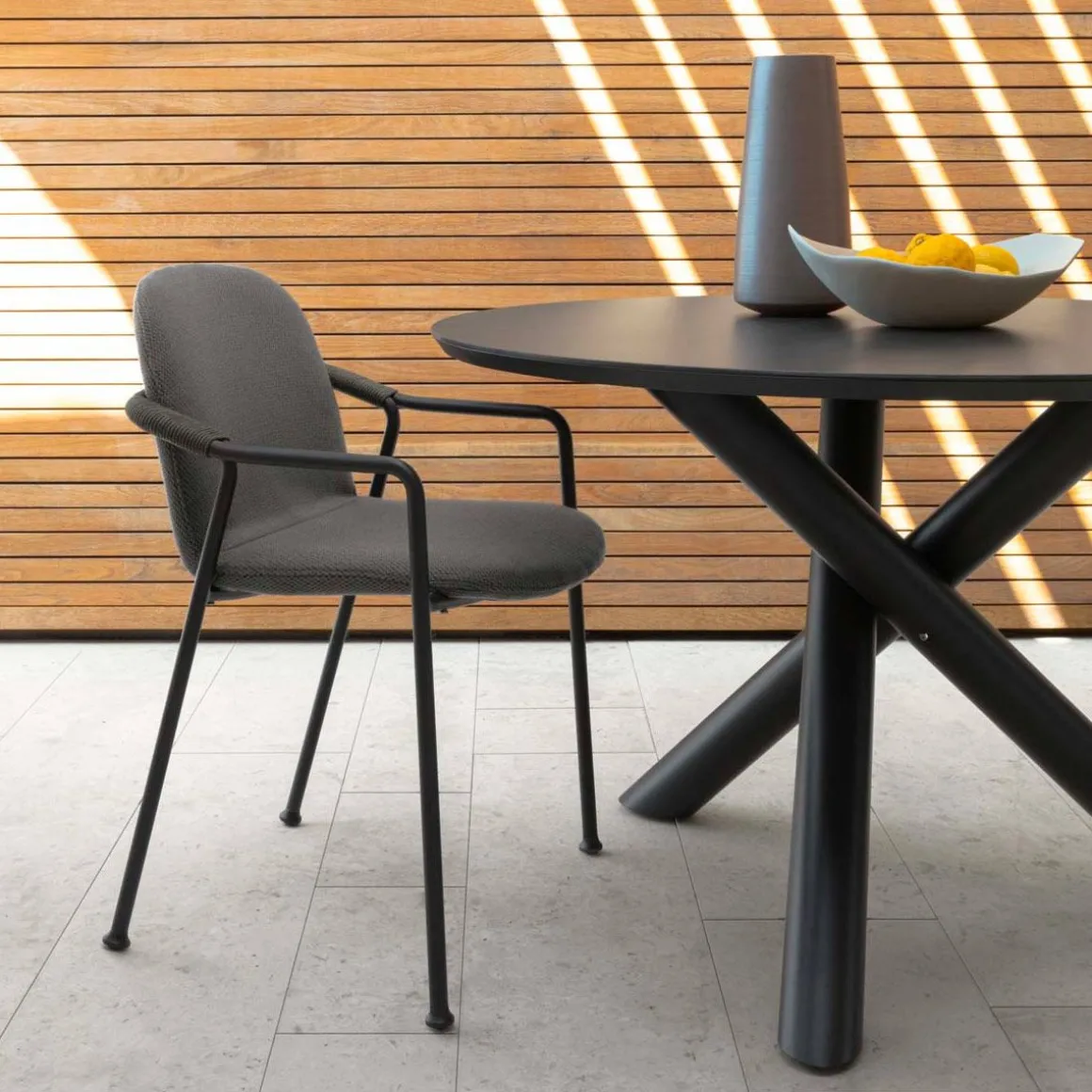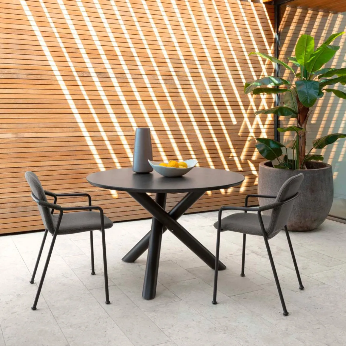 La table à manger Ronde Coral souligne le design équilibré et épuré qui guide toute la collection. Le grès porcelainé est réservé au plateau, tandis que les pieds en aluminium forment une composition insolite et moderne de tubulaires croisés. La table à manger Ronde Coral est le complément d’ameublement idéal pour un living d’extérieur contemporain et de caractère.