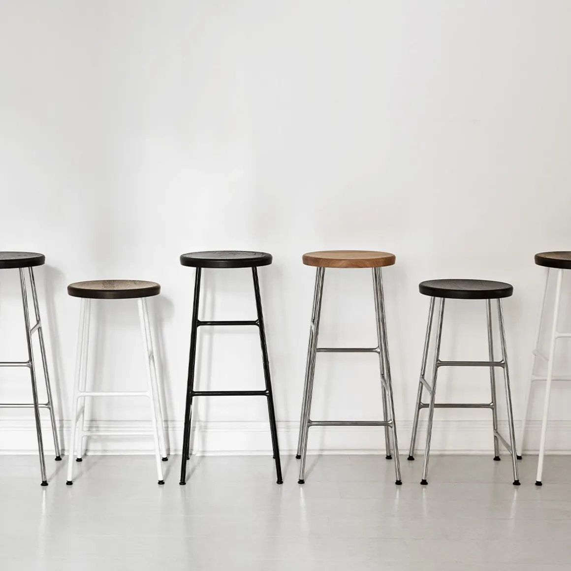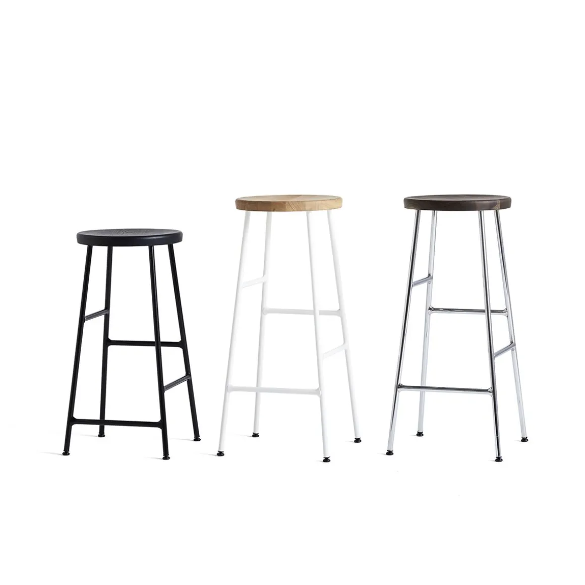 Le tabouret de bar Cornet de Jonas Trampedach est un tabouret de bar classique utilisant une technique innovante de tube d’acier inspirée des porte-vélos. Le siège rond en chêne massif repose sur une base en acier élancée, créant un équilibre intéressant de proportions et de profils. Les tabourets sont disponibles en deux hauteurs différentes, avec un choix de finitions en bois pour le siège et des options de couleur chromée ou thermolaquée pour les pieds. Les tabourets conviennent aux bars, aux îlots et aux plans de travail dans de nombreux environnements privés et publics.
