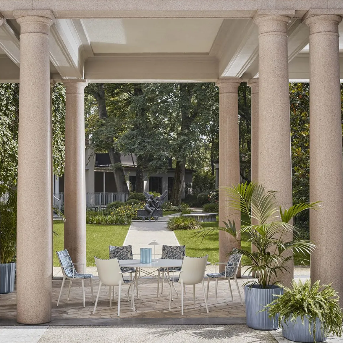 Les tables et les jardinières CORTEZA de Patricia Urquiola qui s’ajoutent à la collection sont fabriquées en matériaux recyclés. Leur motif strié n’est pas sans rappeler le monde végétal et leur donne l’aspect d’écorces naturelles. Ces éléments comprennent une table d’appoint, une table basse et deux jardinières. Ils trouvent tous leur place dans l’environnement en lui conférant une note naturelle et harmonieuse.