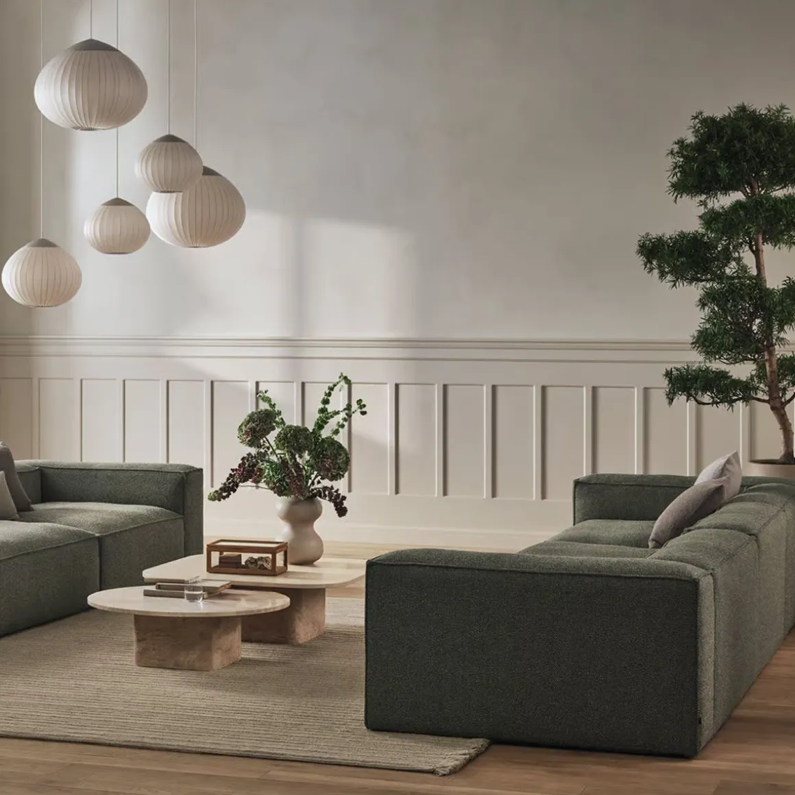 Cosima de Bolia par Kaschkasch. Canapé modulaire connu pour sa forme distinctive et accueillante. Réputé pour son ambiance lounge unique et chaleureuse, ce canapé est doté d’accoudoirs et de dossiers bas qui incitent à la détente. Ses housses amovibles et interchangeables prolongent sa durée de vie. D’une douceur luxueuse et enveloppante, les tissus texturés et bouclés éveillent les sens avec élégance. Tissés selon des techniques élégantes, ils créent une sensation tactile et ajoutent une touche d’originalité et de motif.