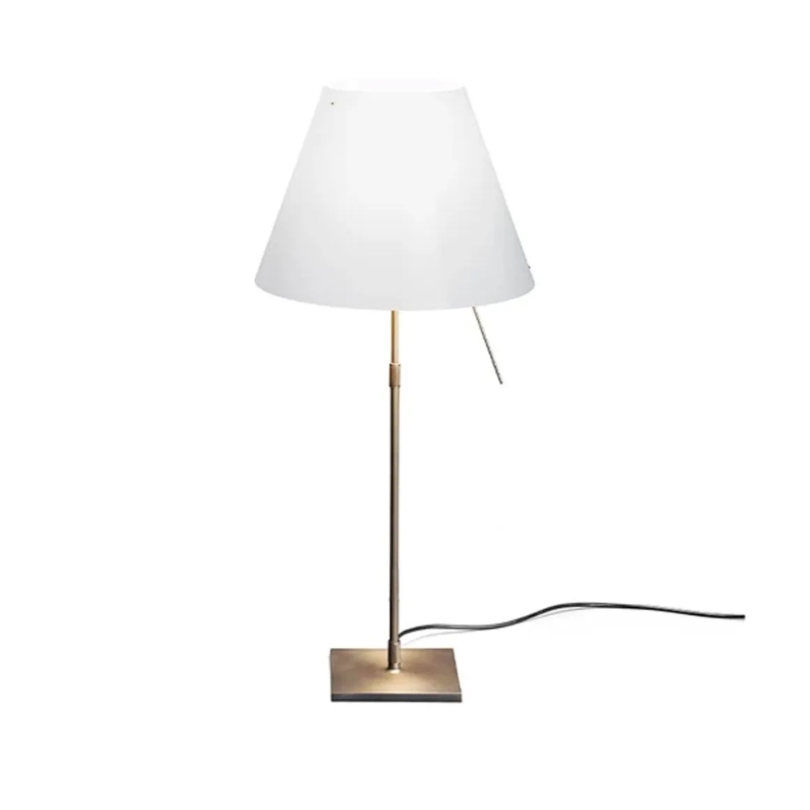 Alliant tradition et technologie, Costanza réinterprète une image classique de manière contemporaine. L’abat-jour interchangeable en polycarbonate diffuse une lumière chaude et agréable. La tige du gradateur sensoriel allume et éteint la lampe en alternant quatre niveaux d’intensité lumineuse.