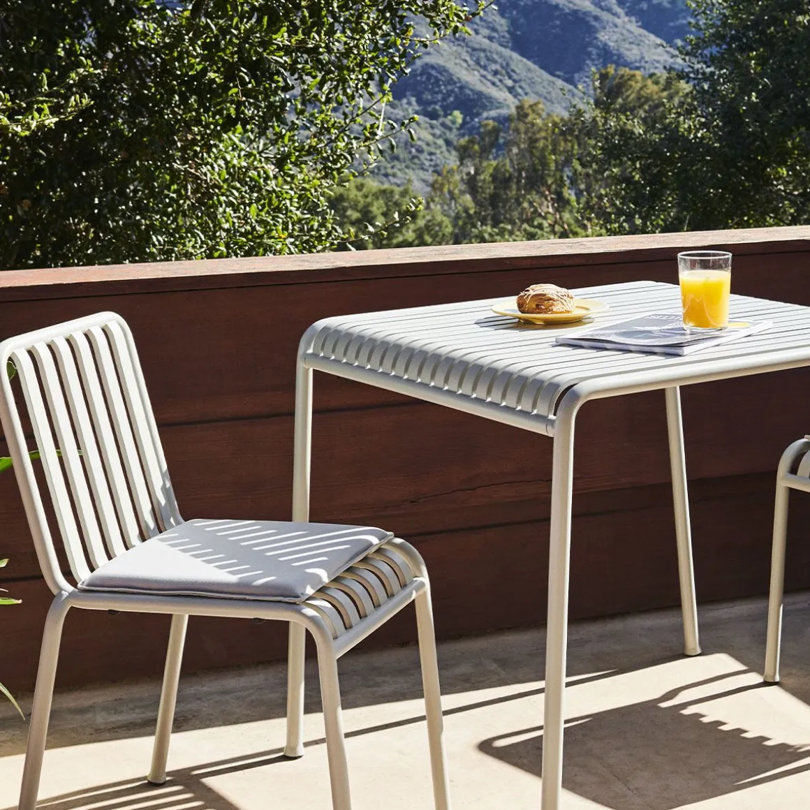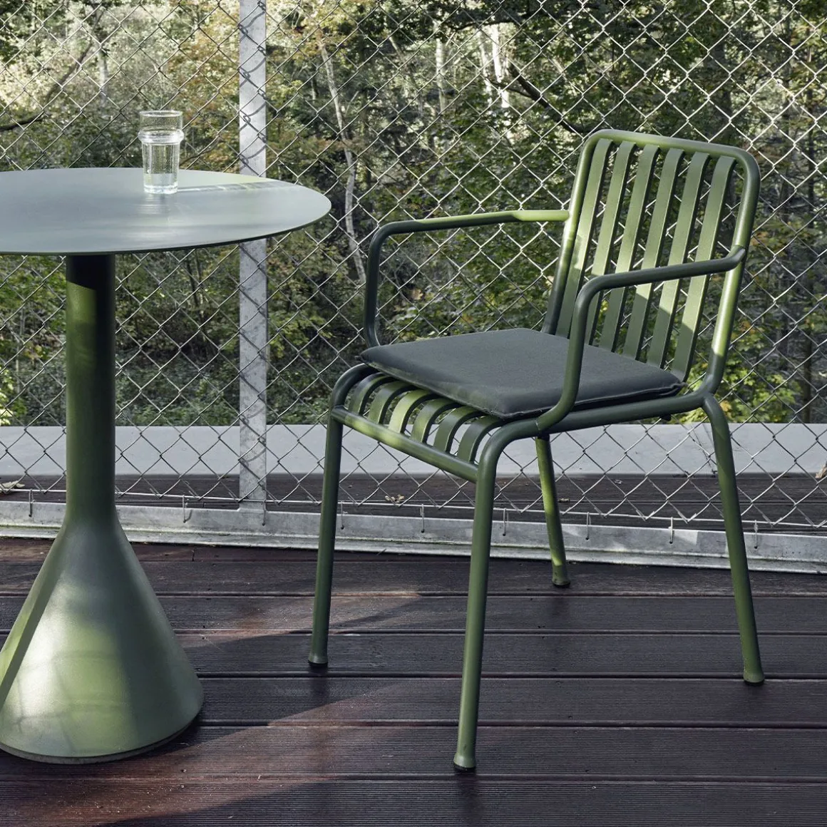 Coussin palissade de Hay. Ajoutant confort et fonctionnalité à la collection Palissade, le coussin Palissade est spécialement conçu pour s’adapter parfaitement à l’assise d’un fauteuil ou d’une chaise. Fin et légèrement rembourré, ce coussin est doté d’un dessous antidérapant pour un maintien optimal. Confectionnés en tissu déperlant, ces coussins sont disponibles en plusieurs coloris et peuvent être utilisés toute l’année.